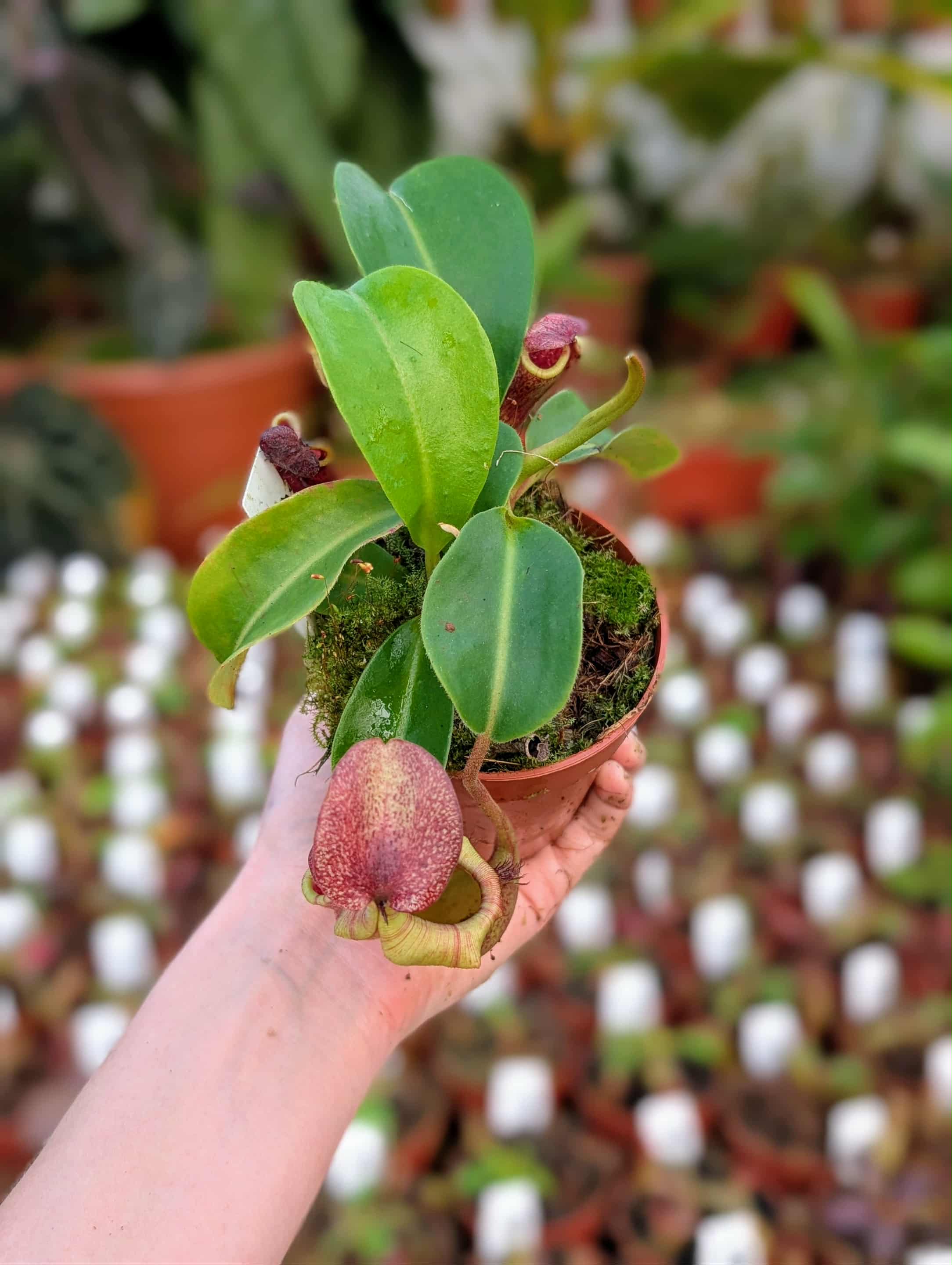 Reserve 1009: N.[(lowii x veitchii) x boschiana] x [(veitchii x maxima x veitchii] x [spectabilis x (lowii x ventricosa)] - (16 cm) now for 30 minutes before anyone else does!