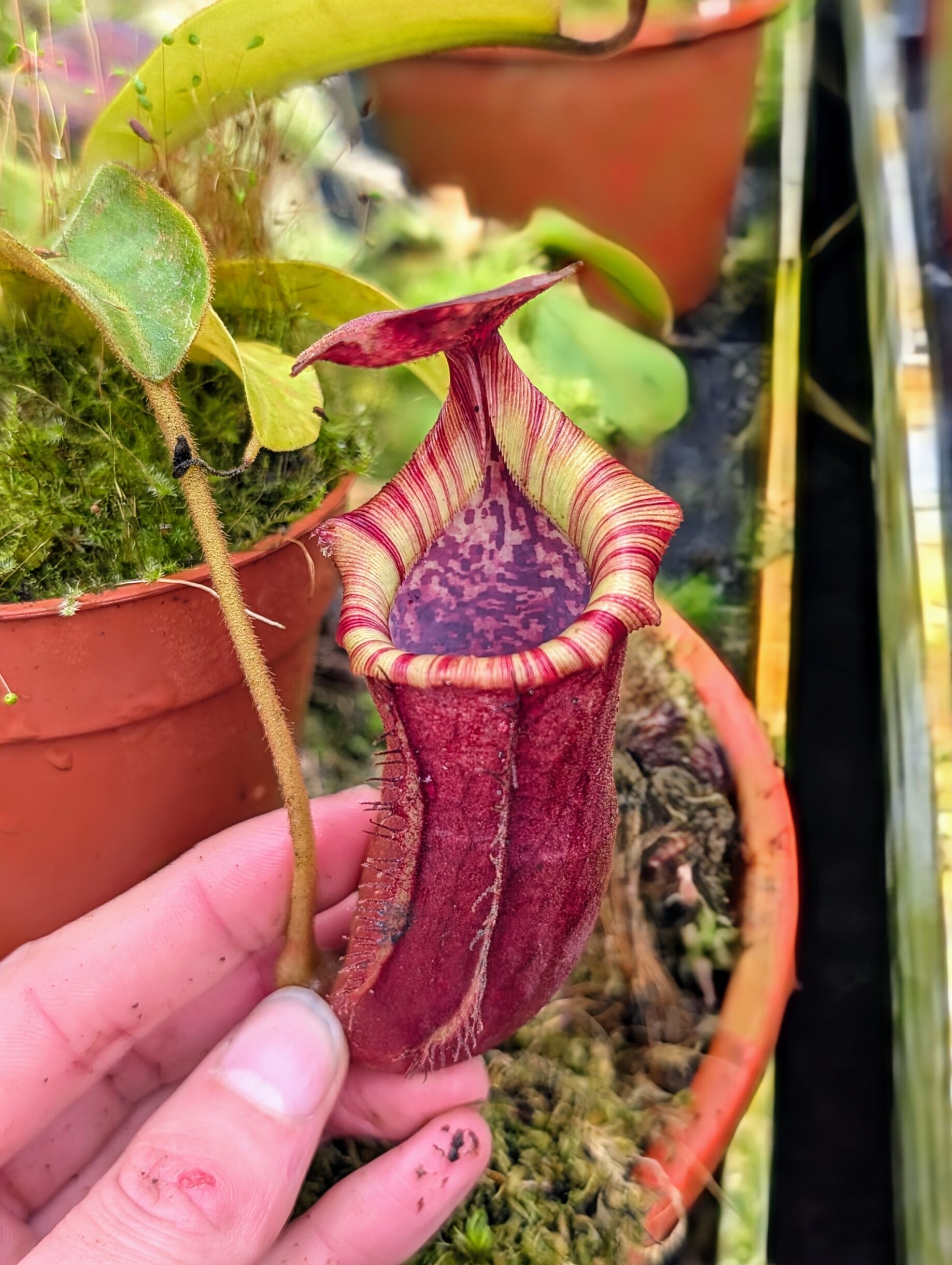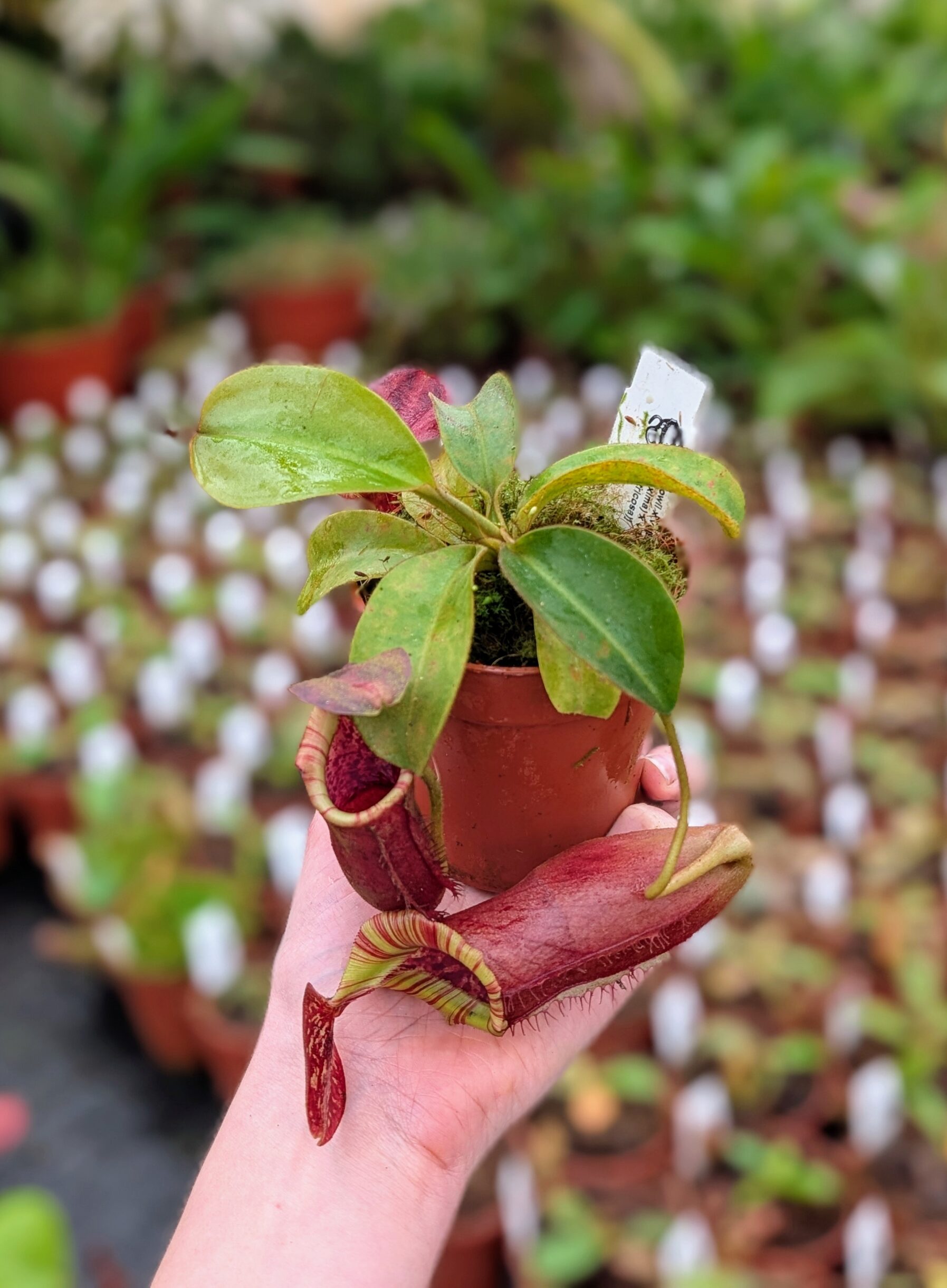 Reserve 1027: N.[(lowii x veitchii) x boschiana] x [(veitchii x maxima x veitchii] x [spectabilis x (lowii x ventricosa)] - (15 cm) now for 30 minutes before anyone else does!