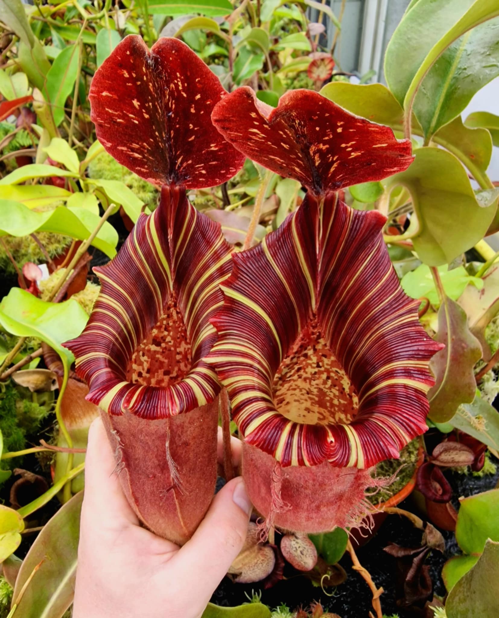 A spectacular multi-species hybrid combining the dramatic features of lowii, veitchii and boschiana.
