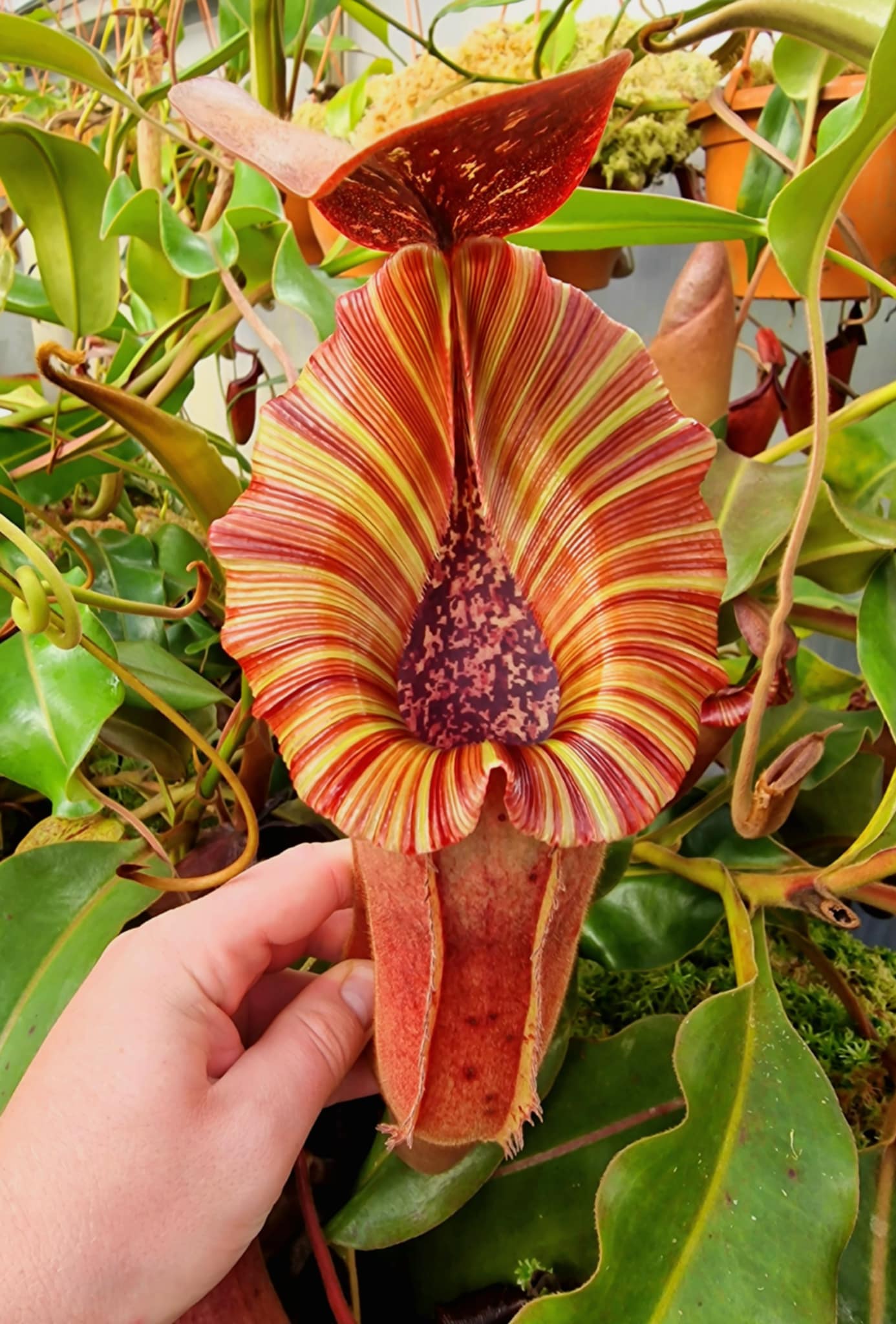 A spectacular multi-species hybrid combining the dramatic features of lowii, veitchii and boschiana.