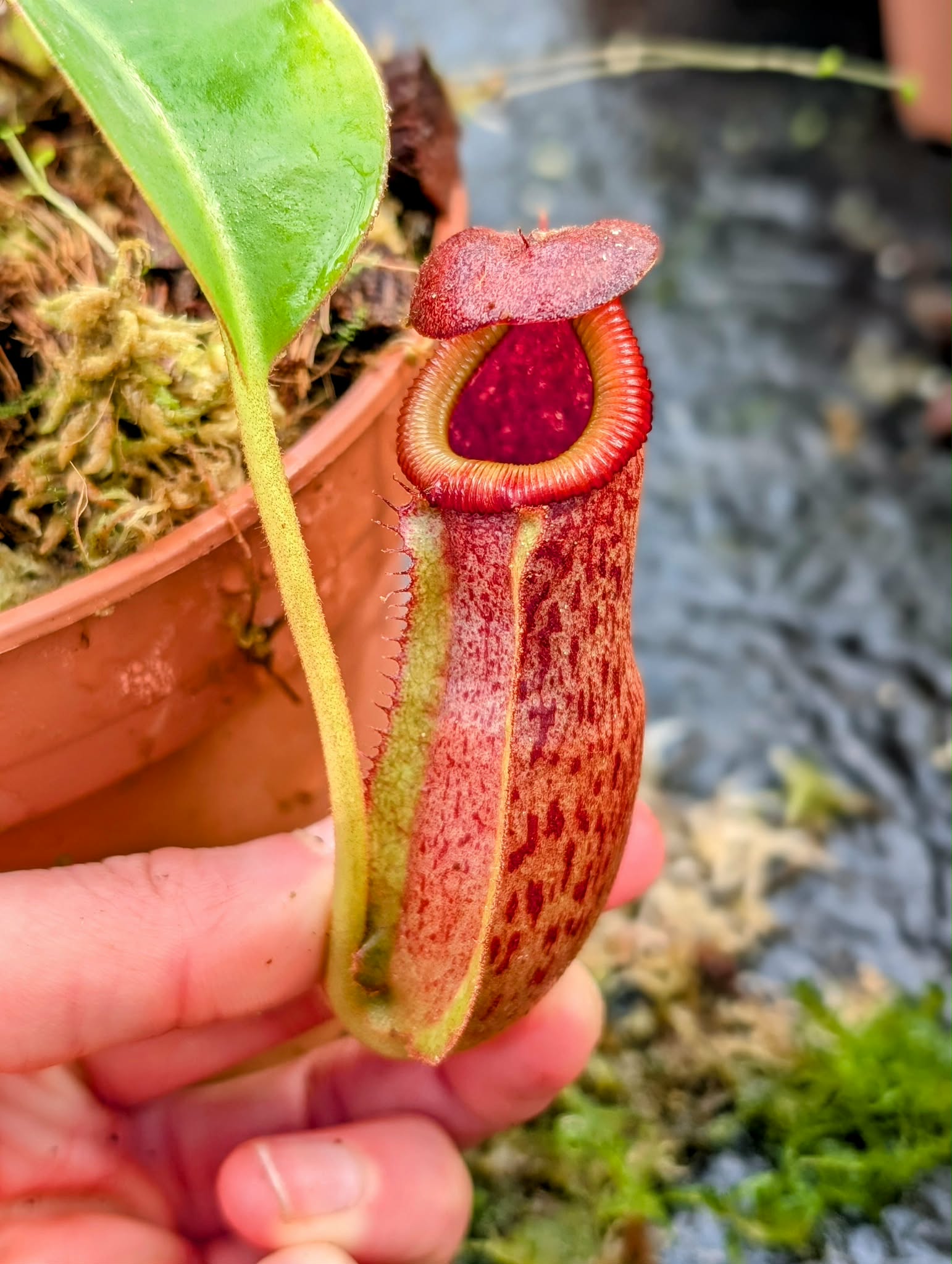 A unique, multi-generation Nepenthes hybrid. Characterized by vigorous growth, solid pitcher and refined details. This plant has excellent long-term potential.