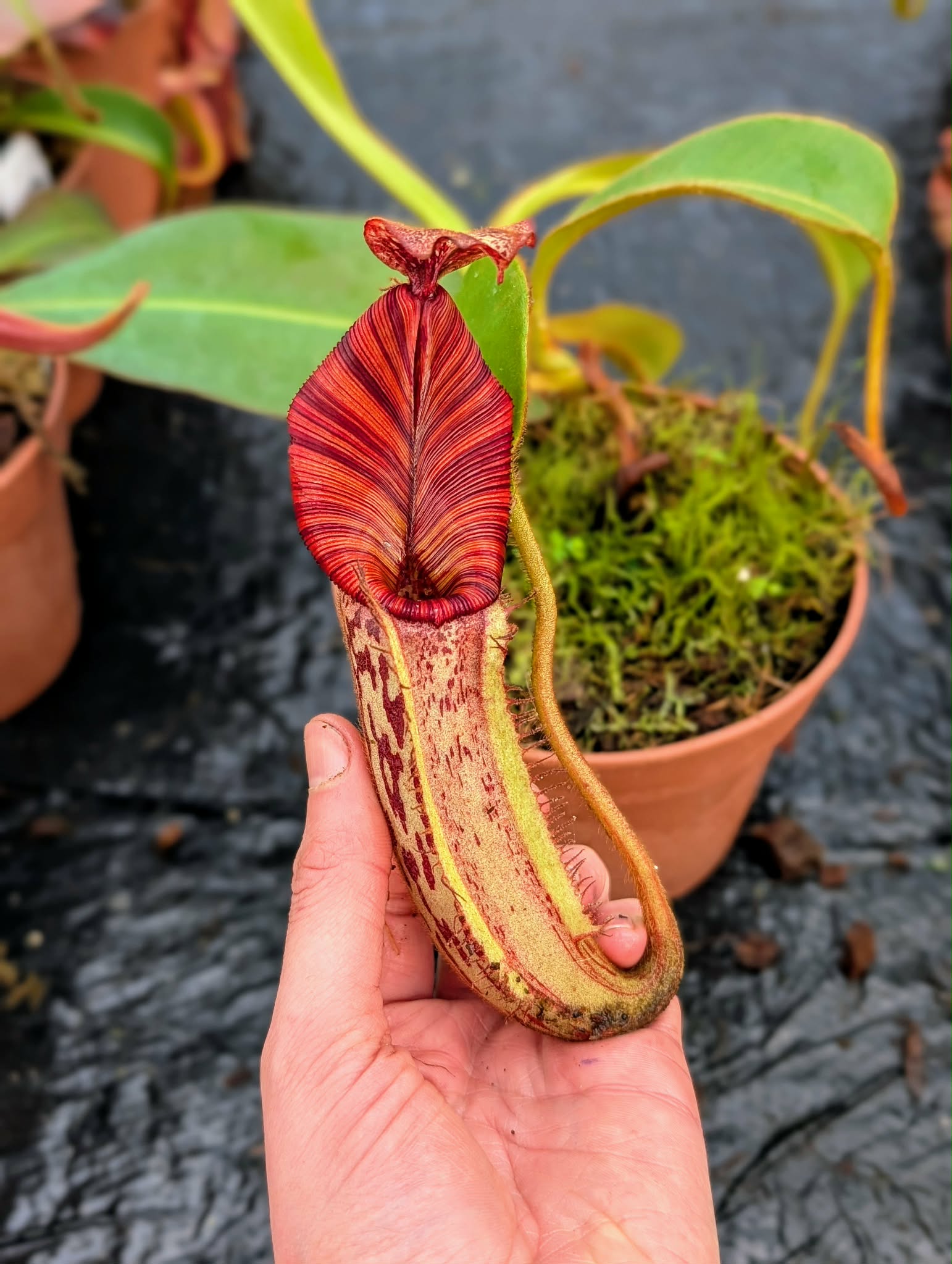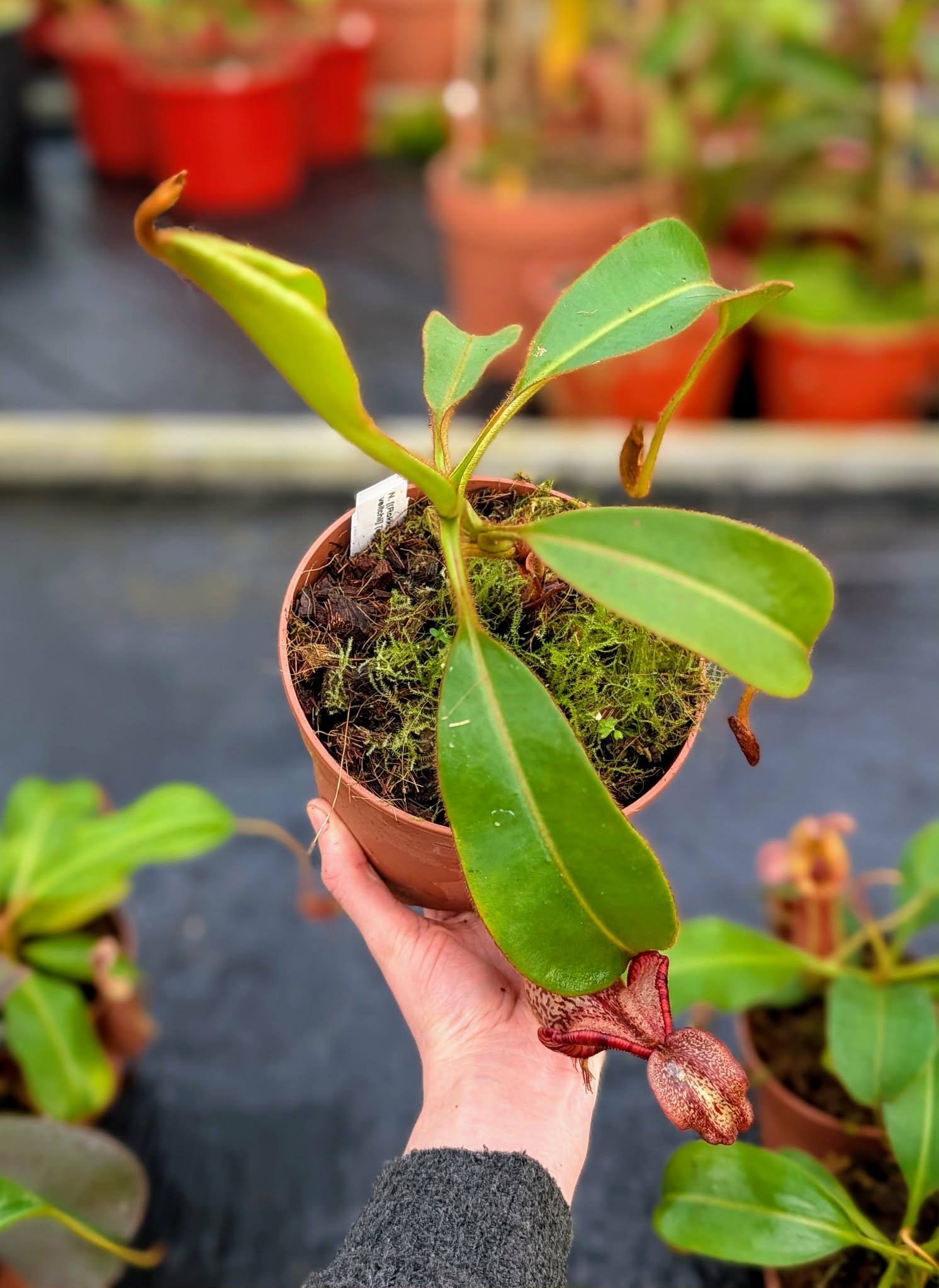 A distinctive Nepenthes hybrid combining bold structure and refined detail. Influences from N. boschiana and N. veitchii provide sturdy growth and well-formed pitchers, while N. mollis adds a softer, more elegant touch.