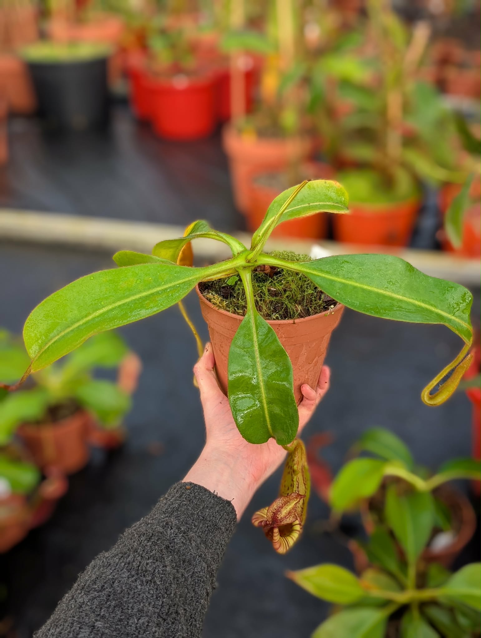 A distinctive Nepenthes hybrid combining bold structure and refined detail. Influences from N. boschiana and N. veitchii provide sturdy growth and well-formed pitchers, while N. mollis adds a softer, more elegant touch.