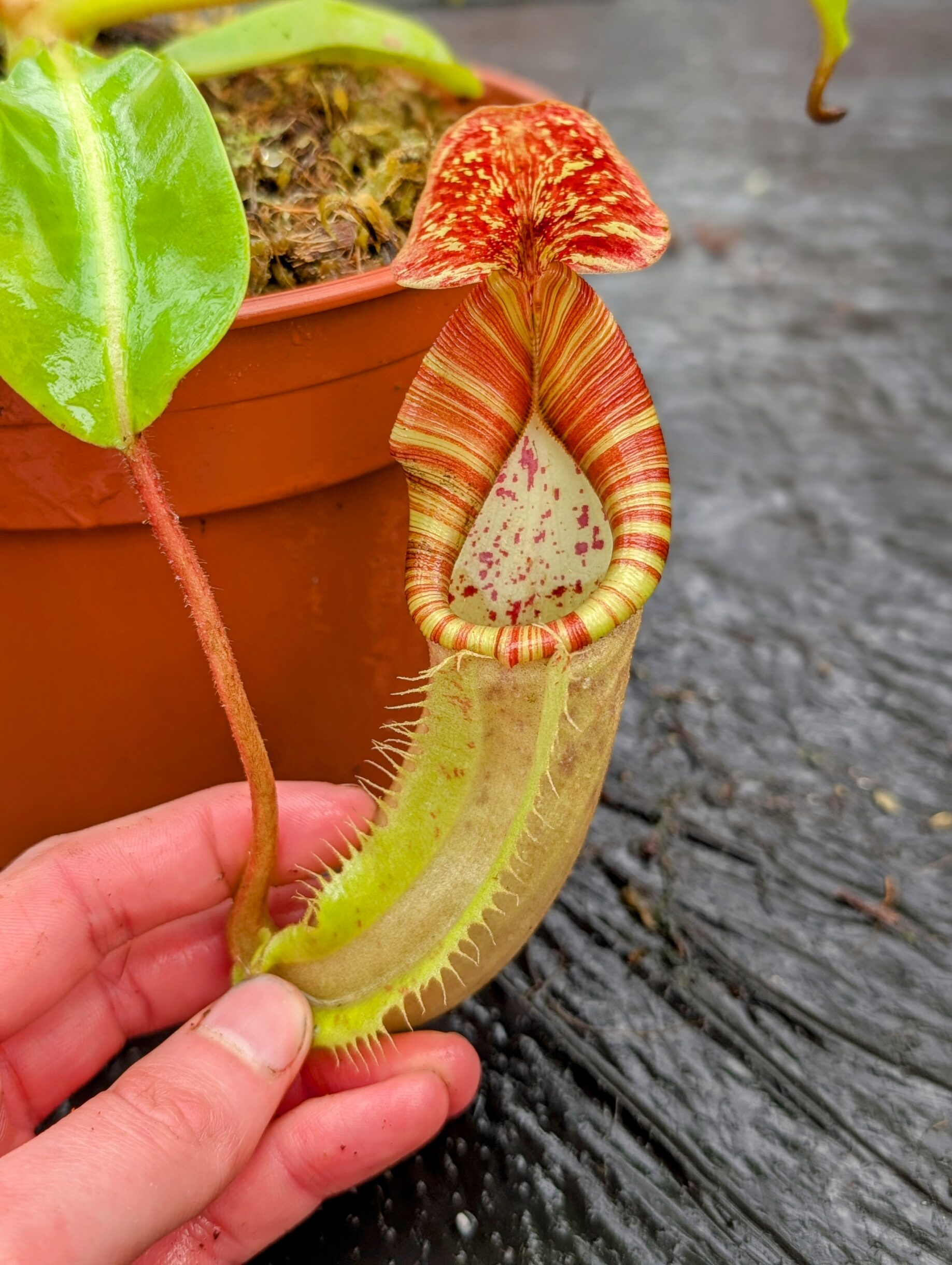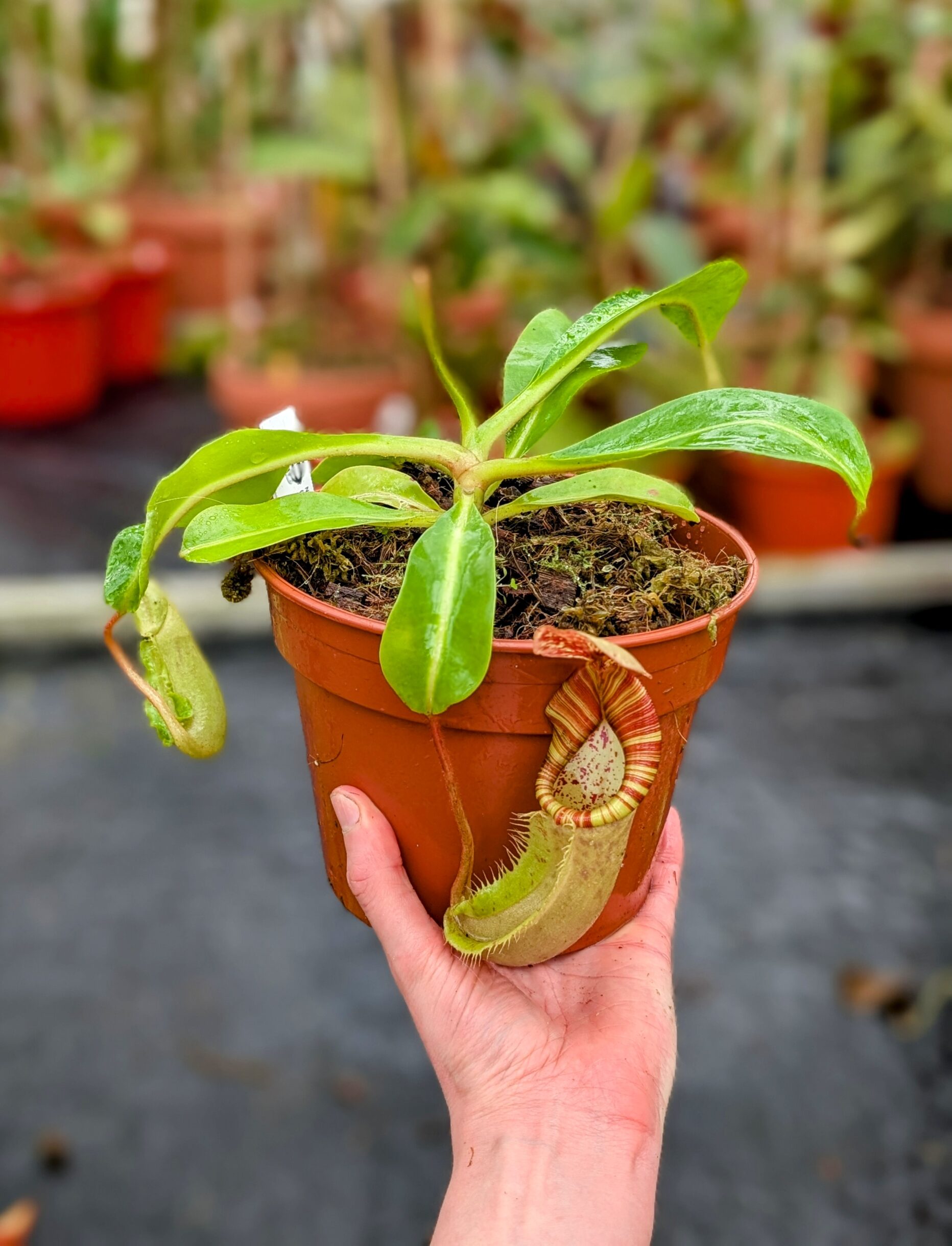An exceptionally Nepenthes hybrid! Expect well-formed pitchers, a prominent peristome, and a wide range of color expression depending on conditions.
