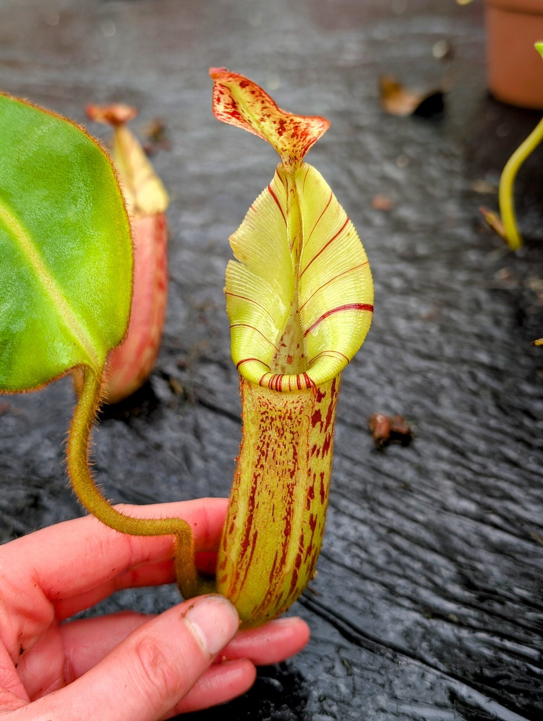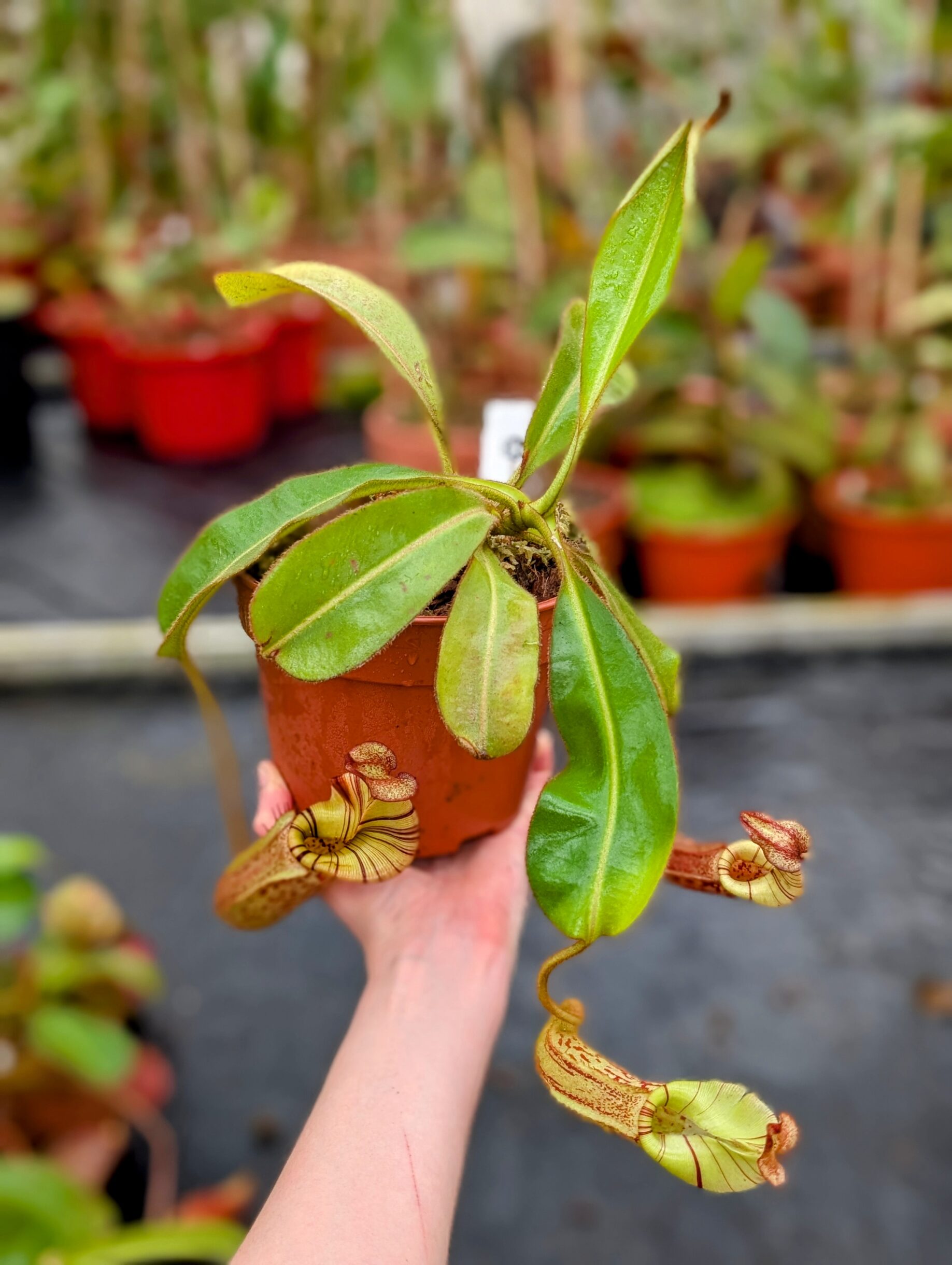 A distinctive Nepenthes hybrid combining bold structure and refined detail. Influences from N. boschiana and N. veitchii provide sturdy growth and well-formed pitchers, while N. mollis adds a softer, more elegant touch.