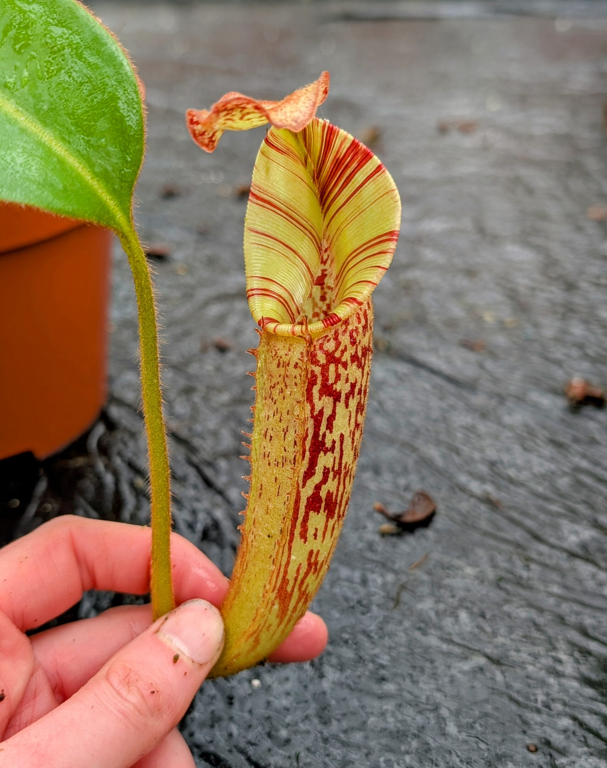 A distinctive Nepenthes hybrid combining bold structure and refined detail. Influences from N. boschiana and N. veitchii provide sturdy growth and well-formed pitchers, while N. mollis adds a softer, more elegant touch.