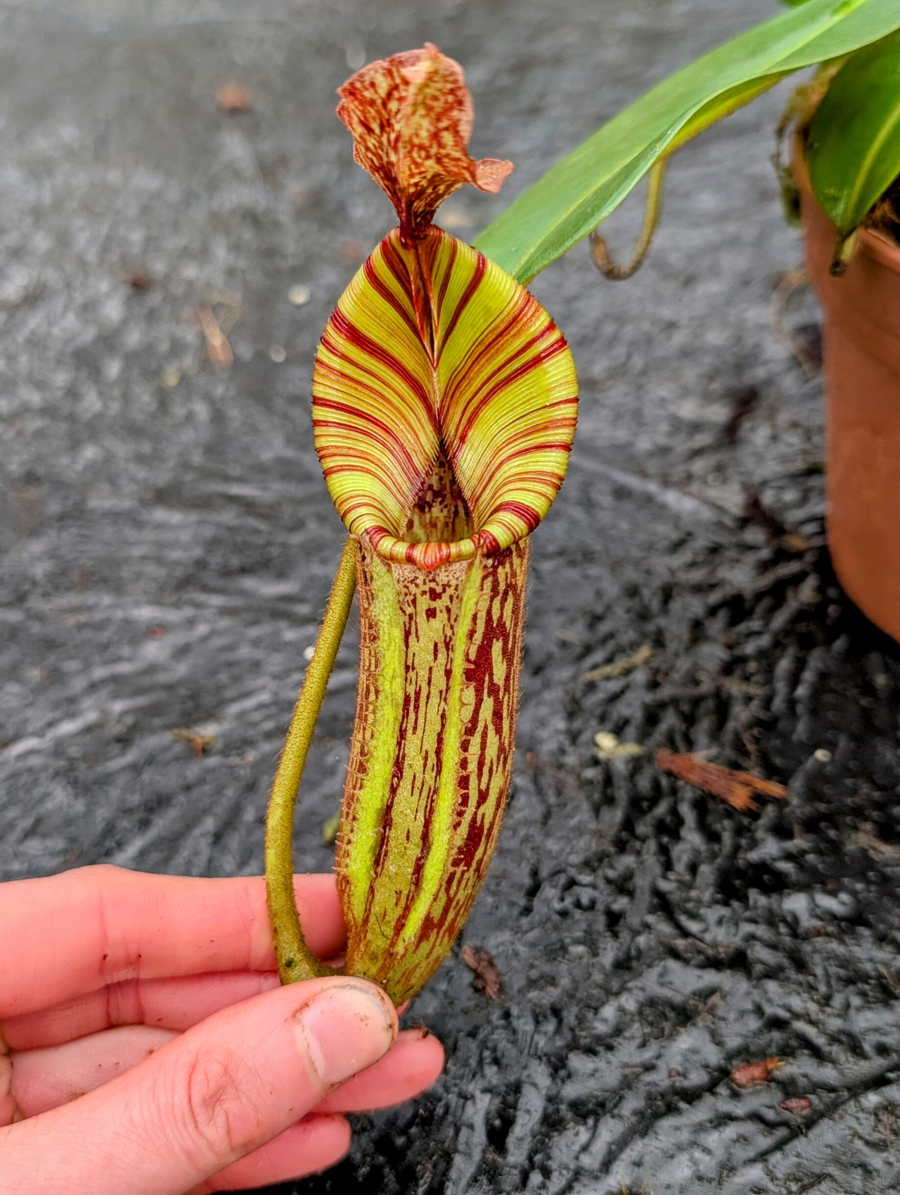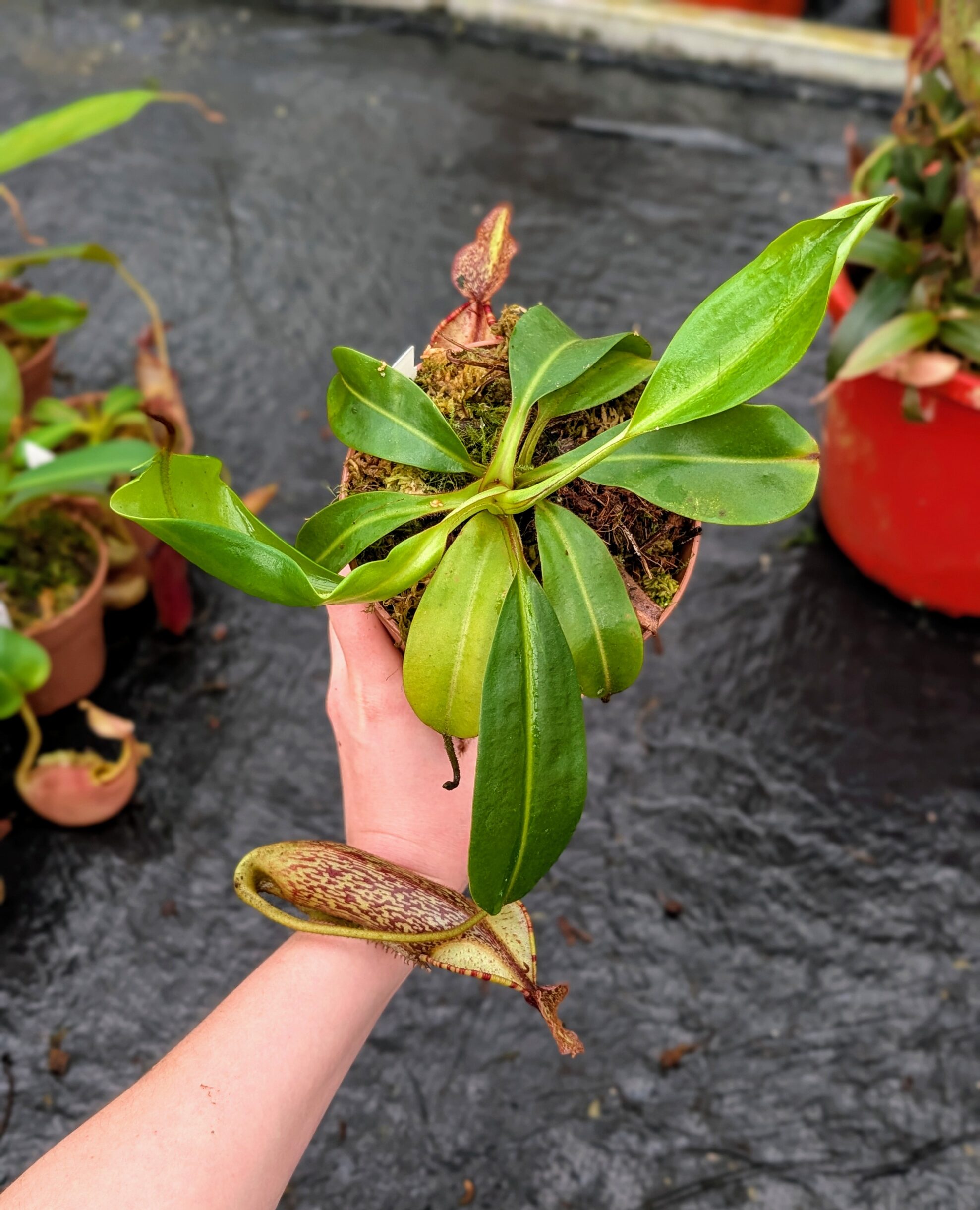 1122: N. ([Rokko ‘Exotica’ x boschiana) x veitchii] x {maxima x [(stenophylla x lowii) x (Rokko x veitchii)]}) x mollis – EP – (27 cm)