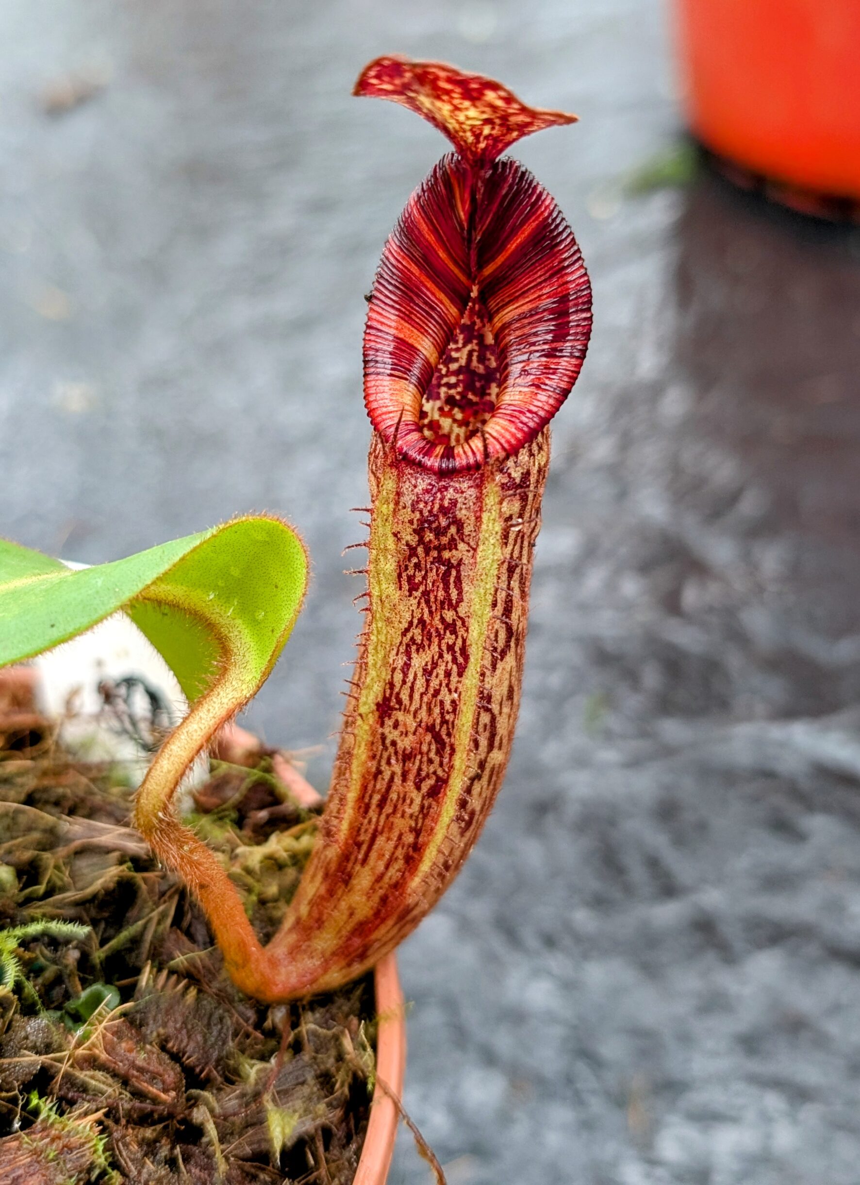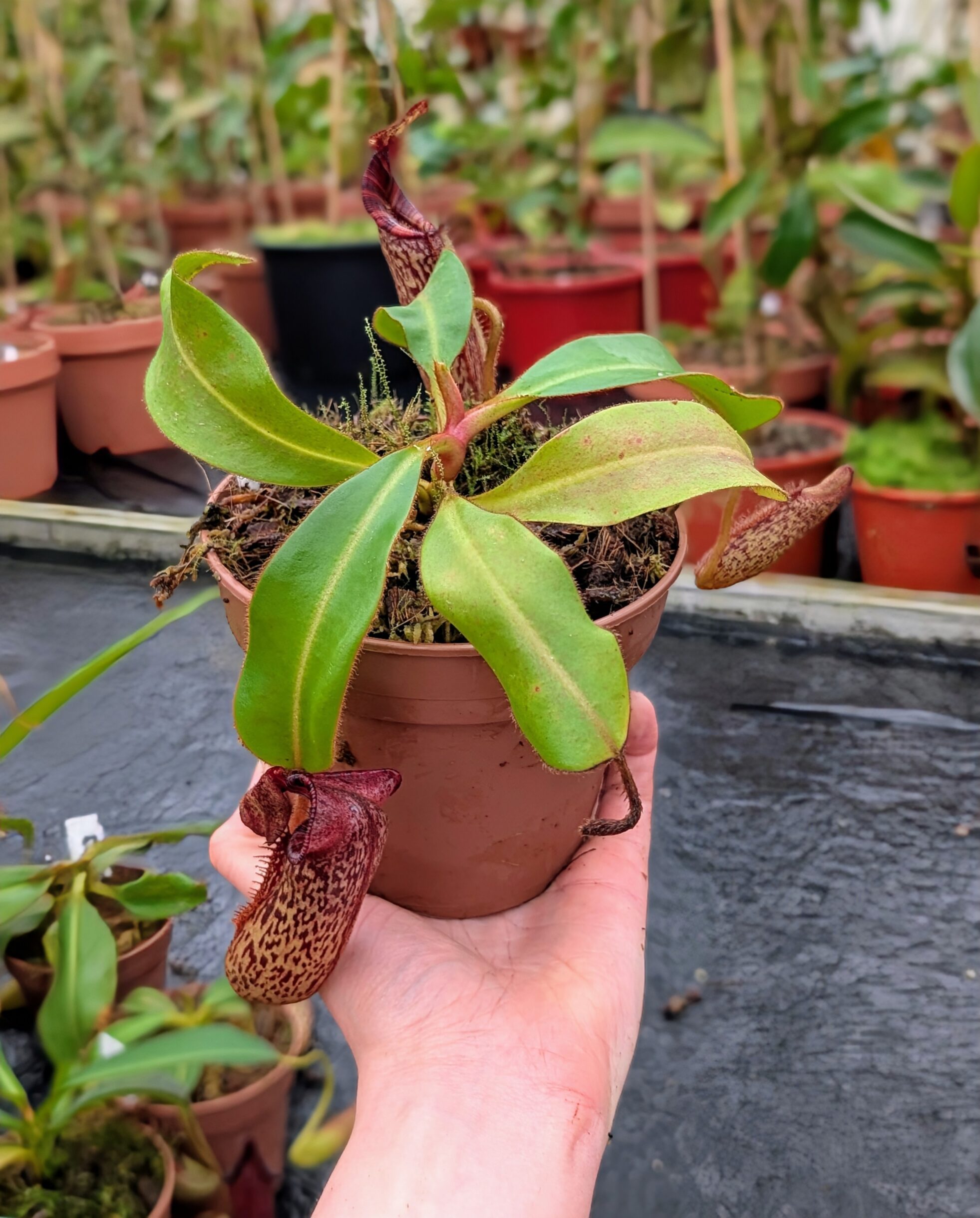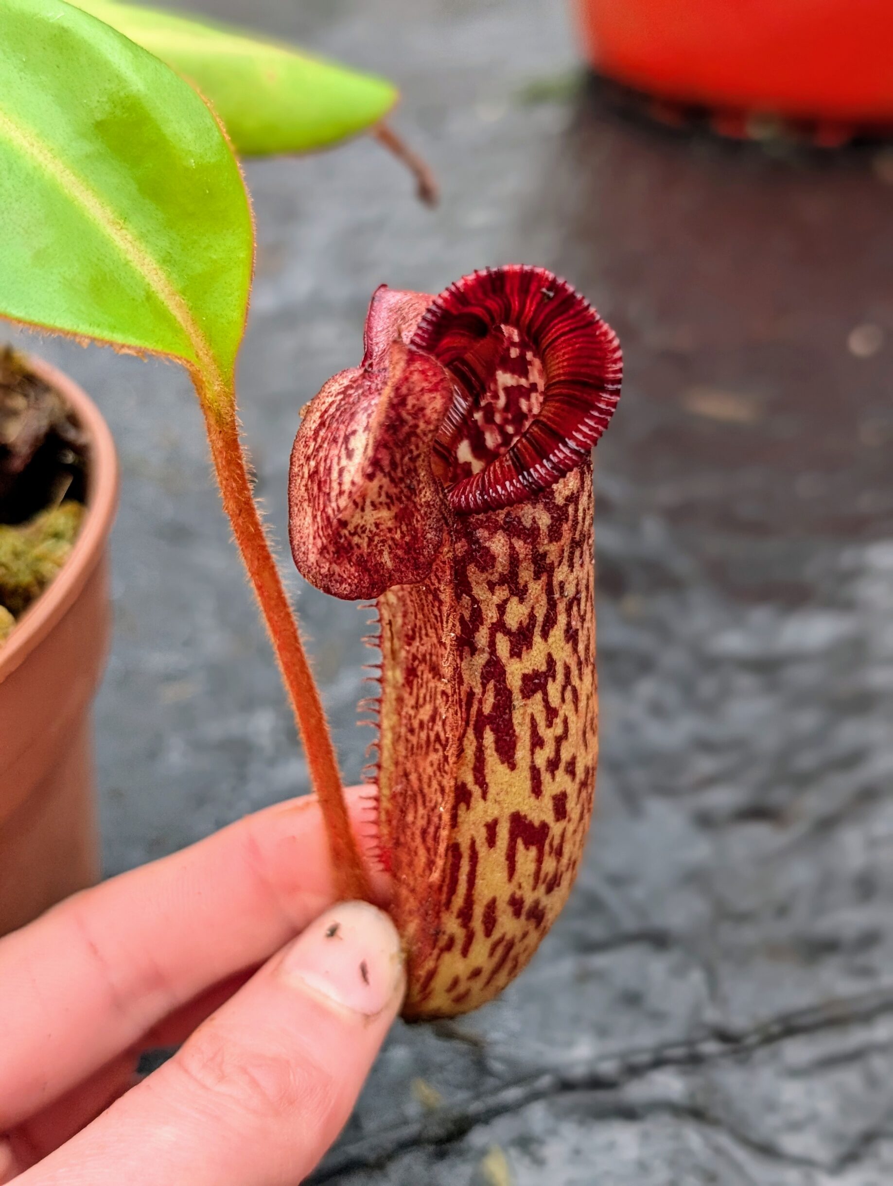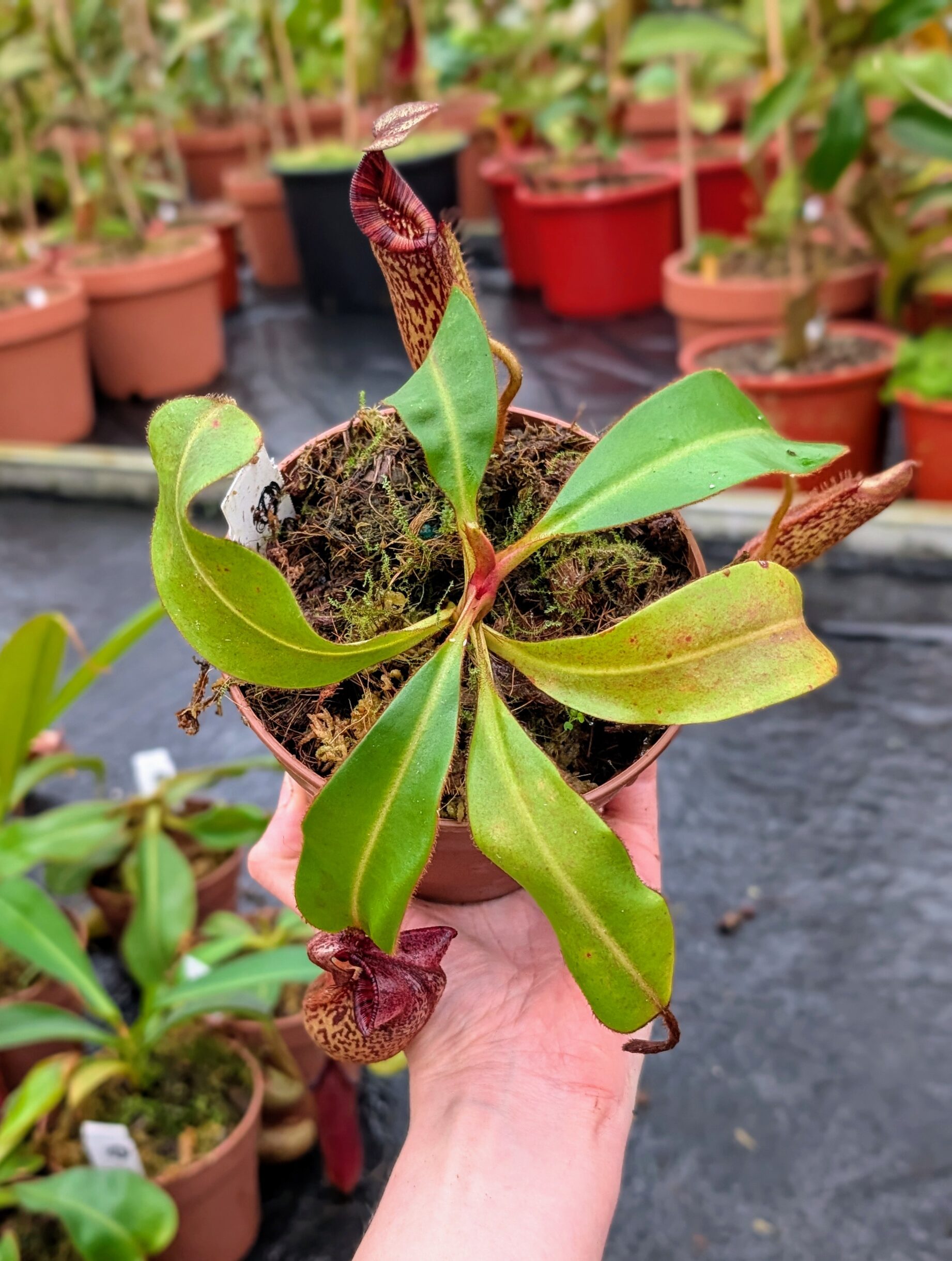 A distinctive Nepenthes hybrid combining bold structure and refined detail. Influences from N. boschiana and N. veitchii provide sturdy growth and well-formed pitchers, while N. mollis adds a softer, more elegant touch.