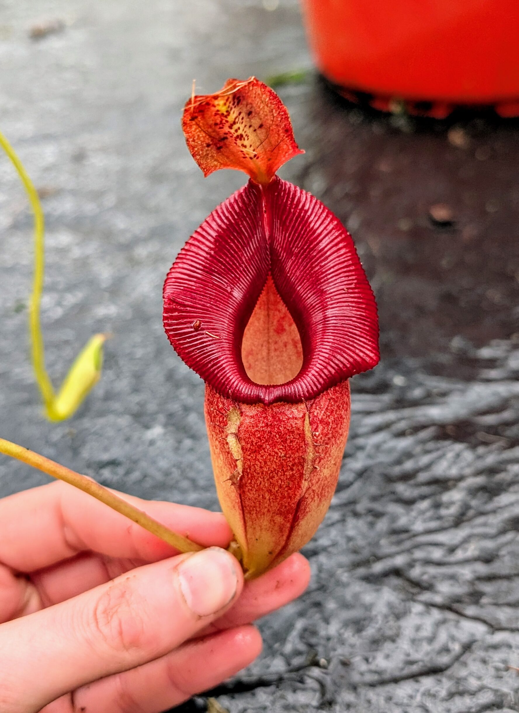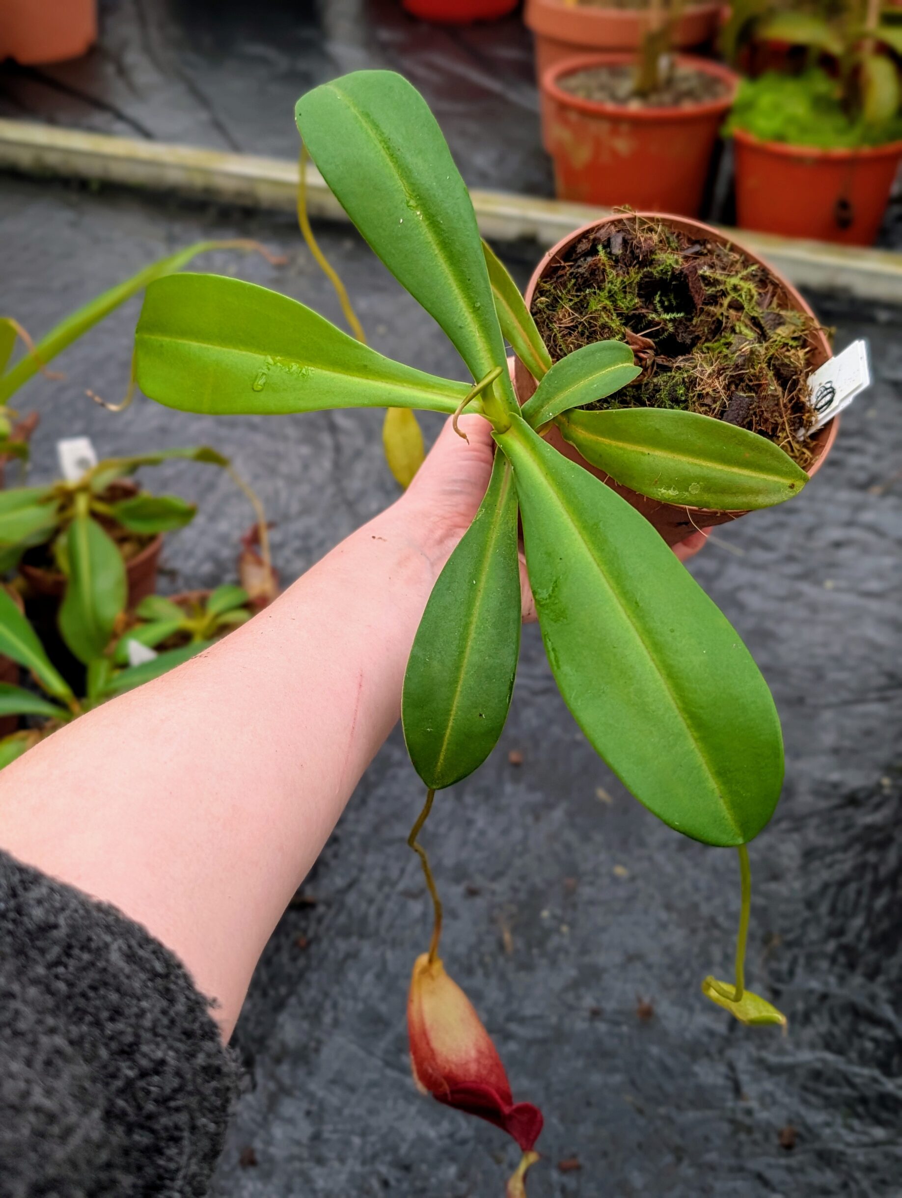 A compact yet striking Nepenthes hybrid combining the sturdy growth and bold pitchers of N. carunculata with the elegant form and refined peristome of N. jacquelineae.
