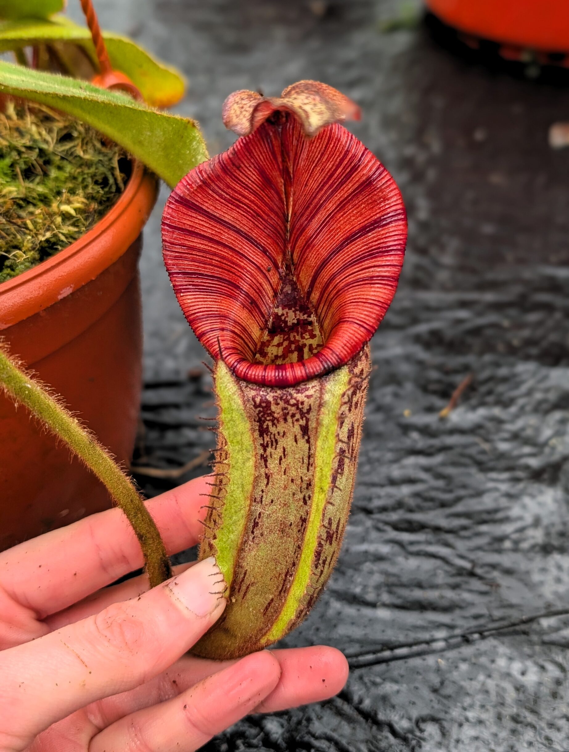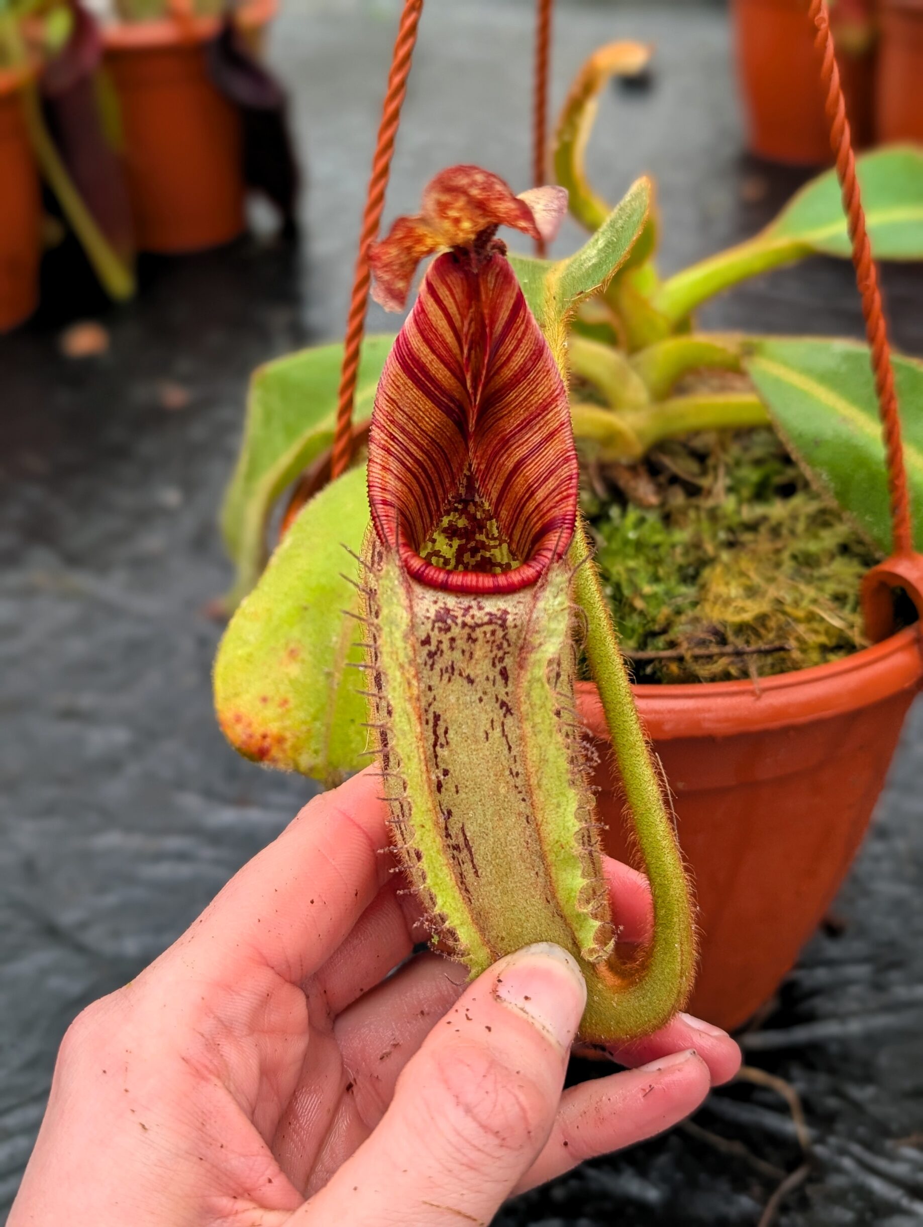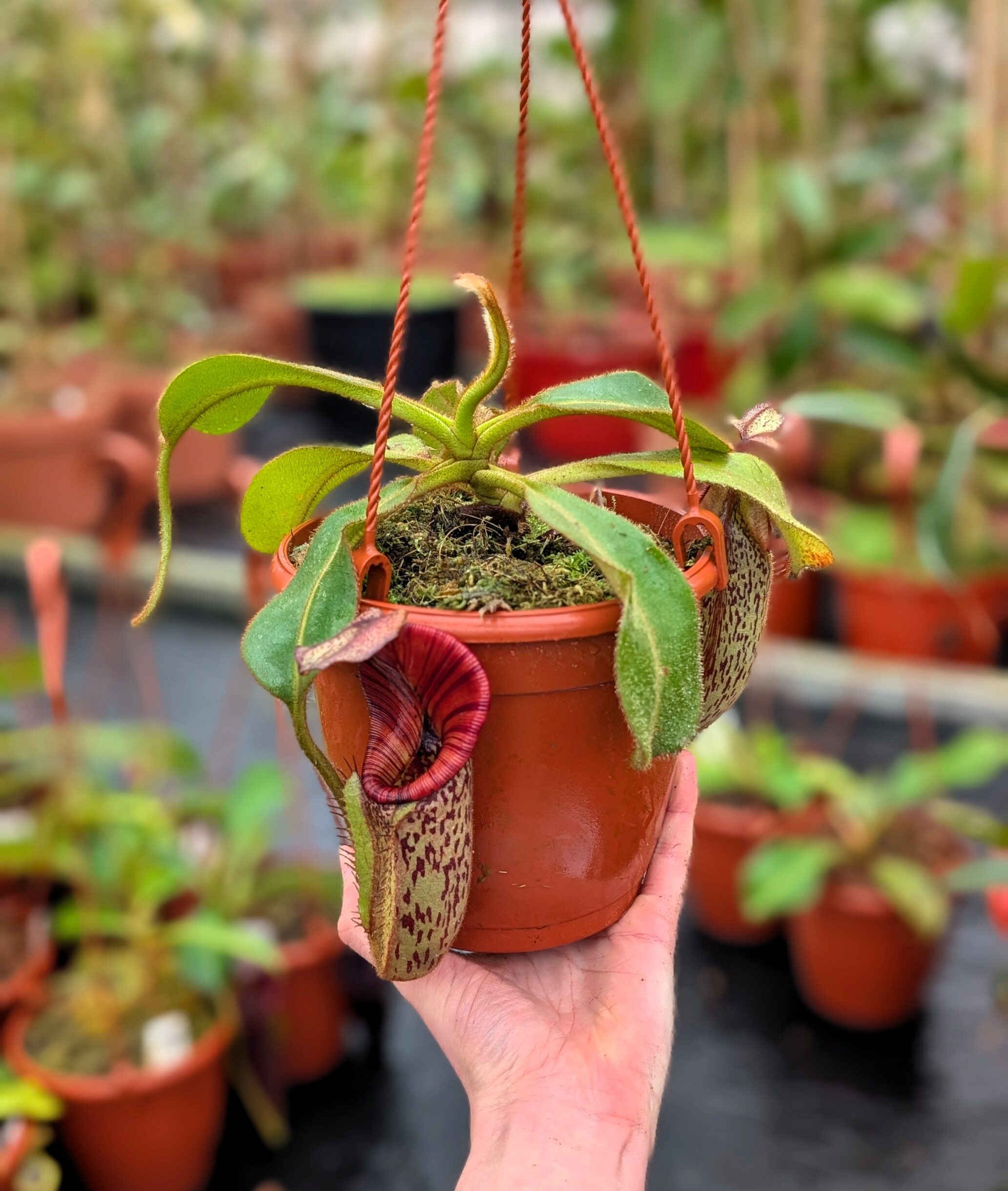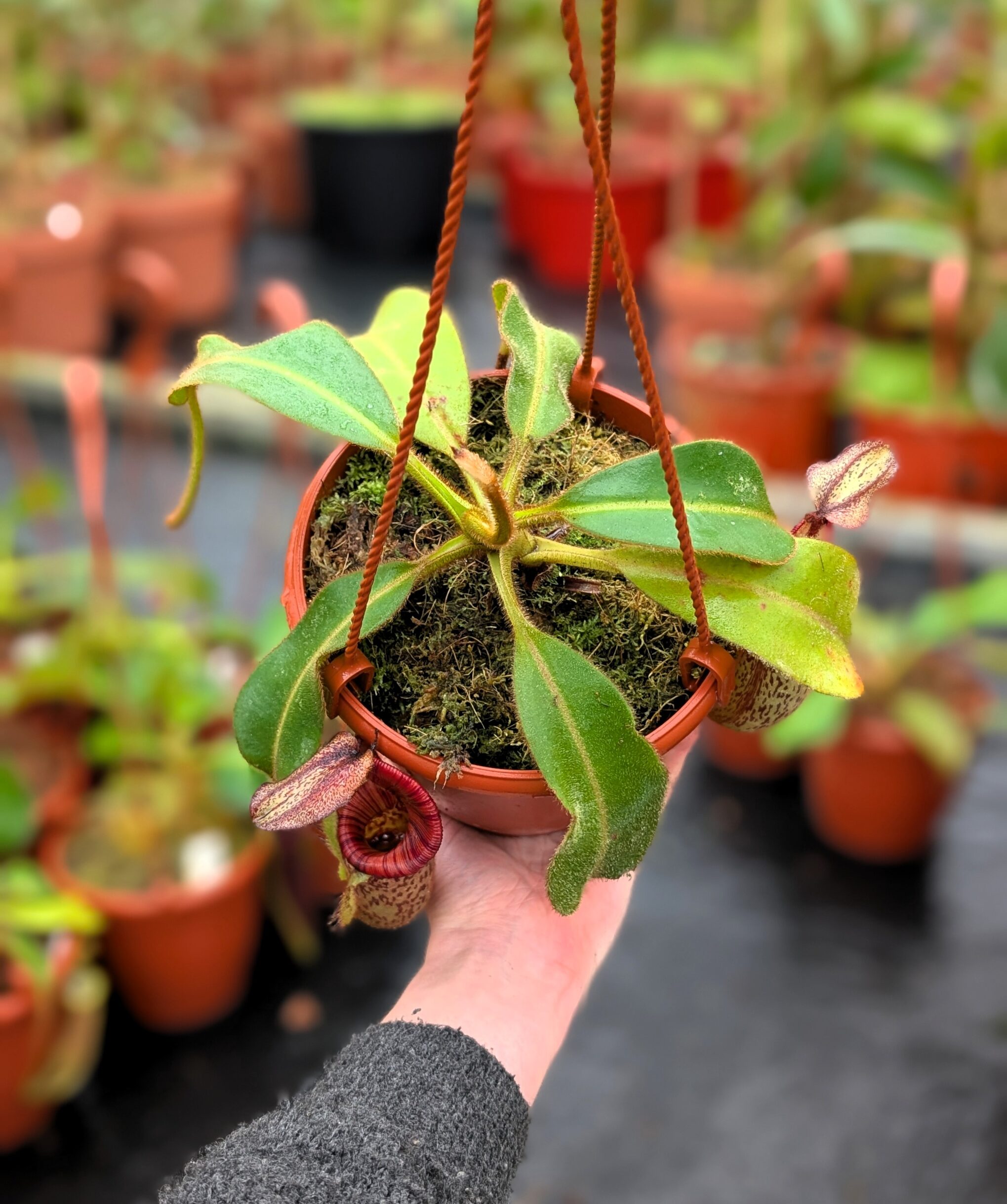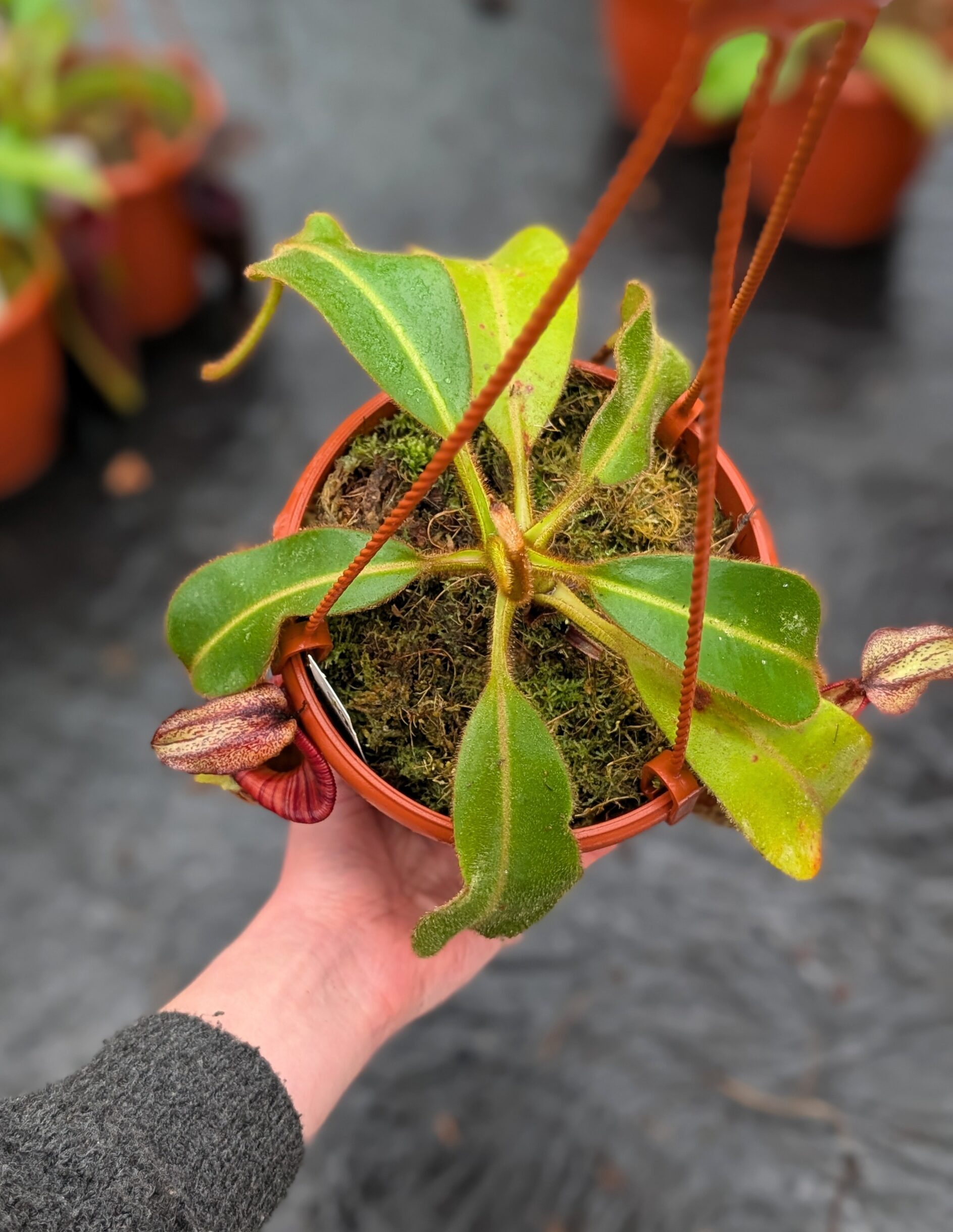 A distinctive Nepenthes hybrid combining bold structure and refined detail. Influences from N. boschiana and N. veitchii provide sturdy growth and well-formed pitchers, while N. mollis adds a softer, more elegant touch.