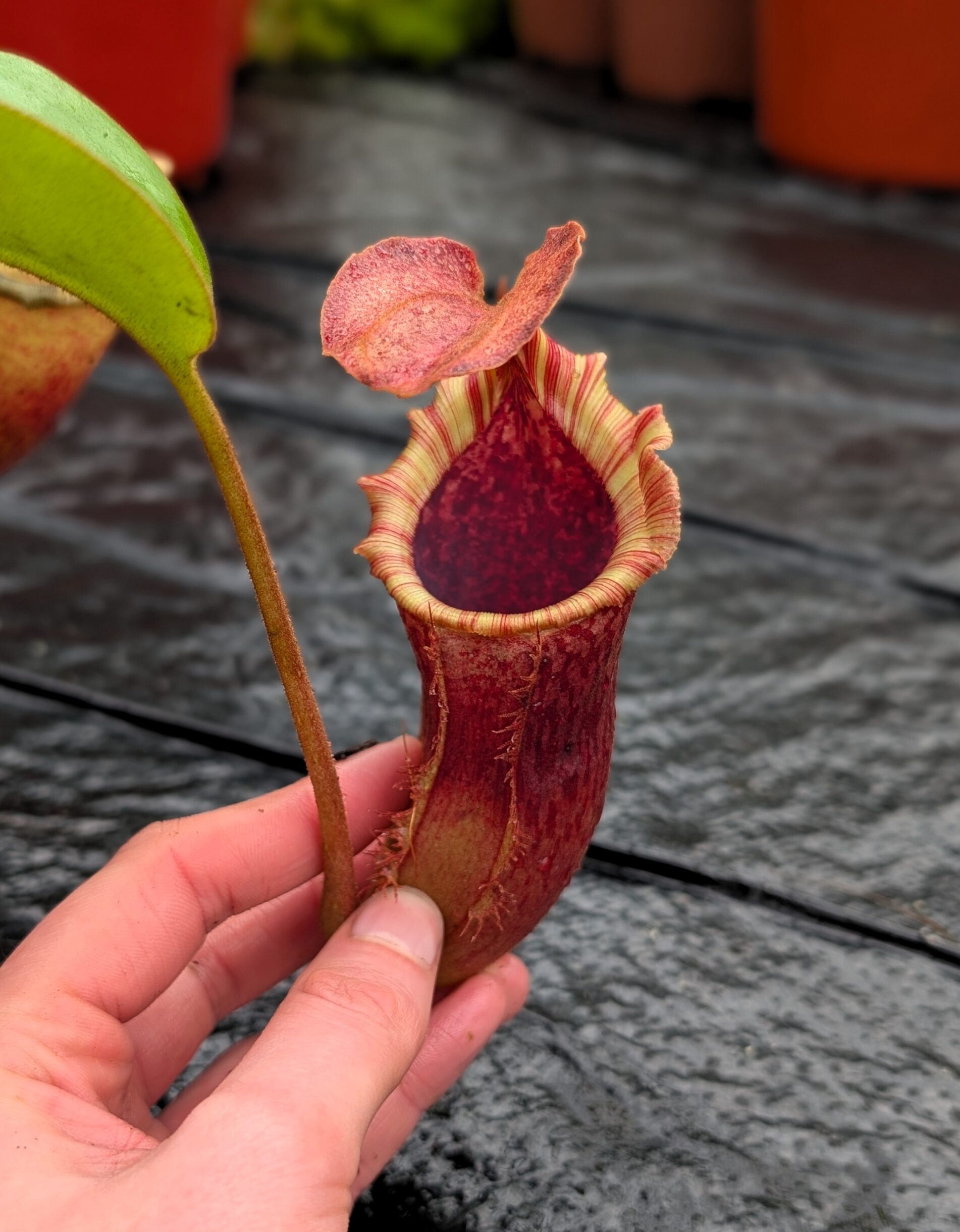 I expect some exceptionally squat pitchers with a striped peristome with a maroon colouration