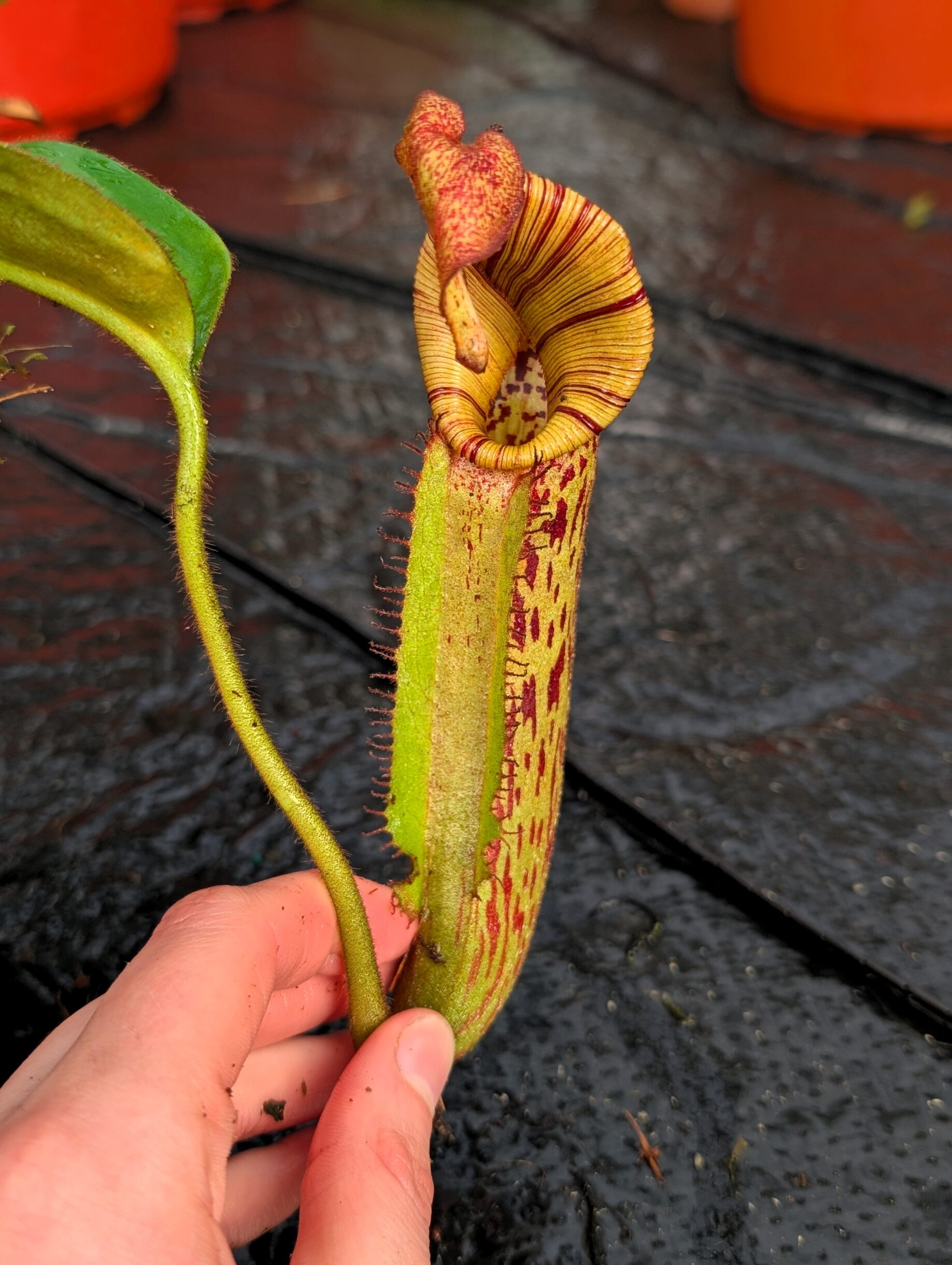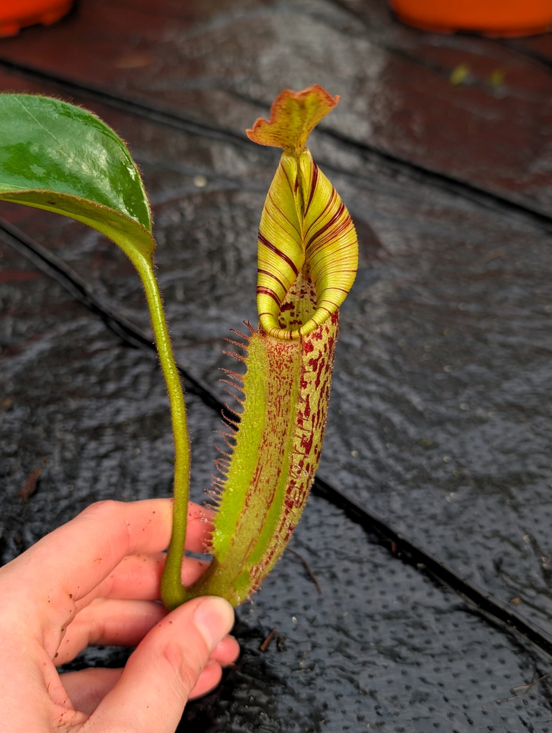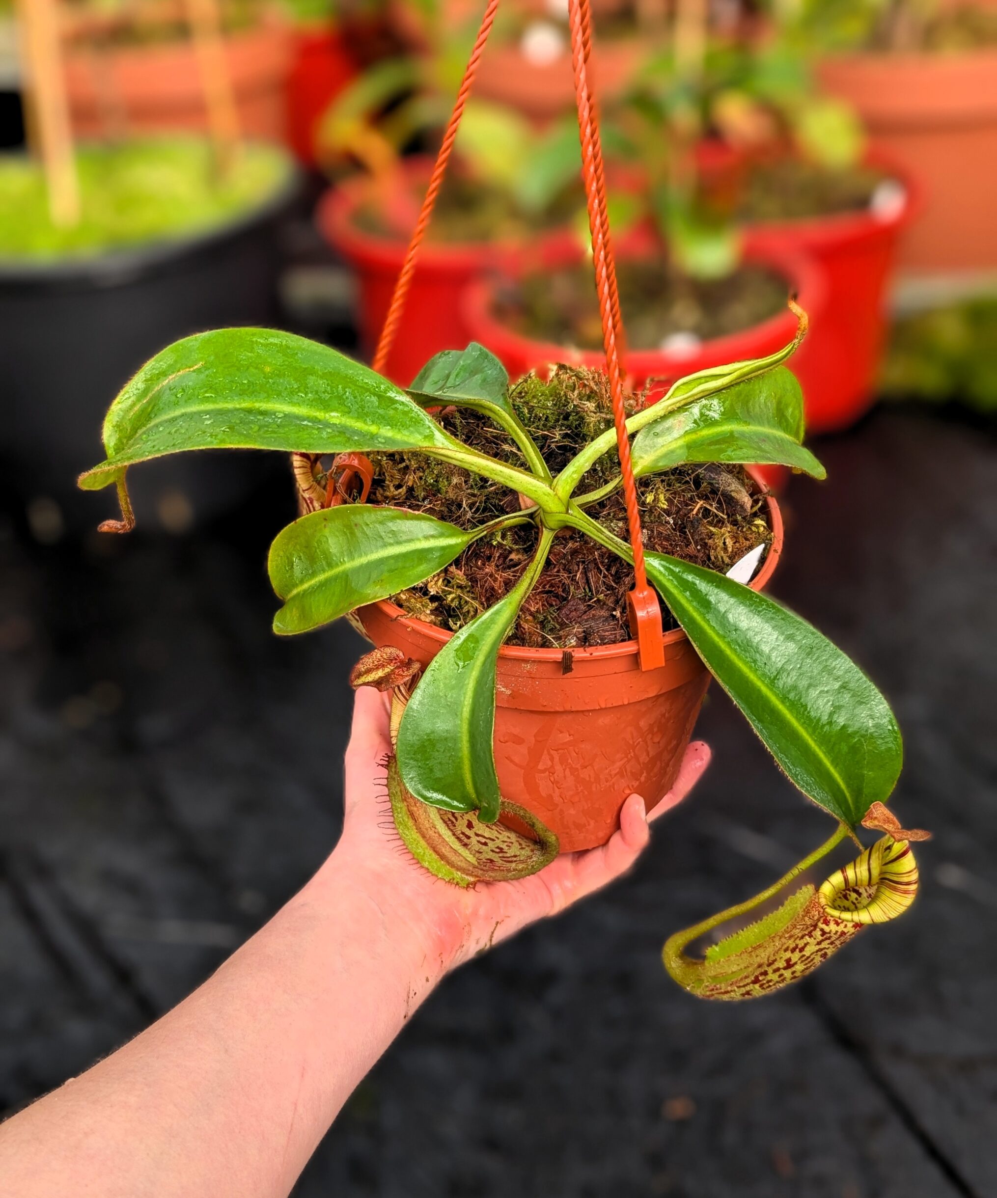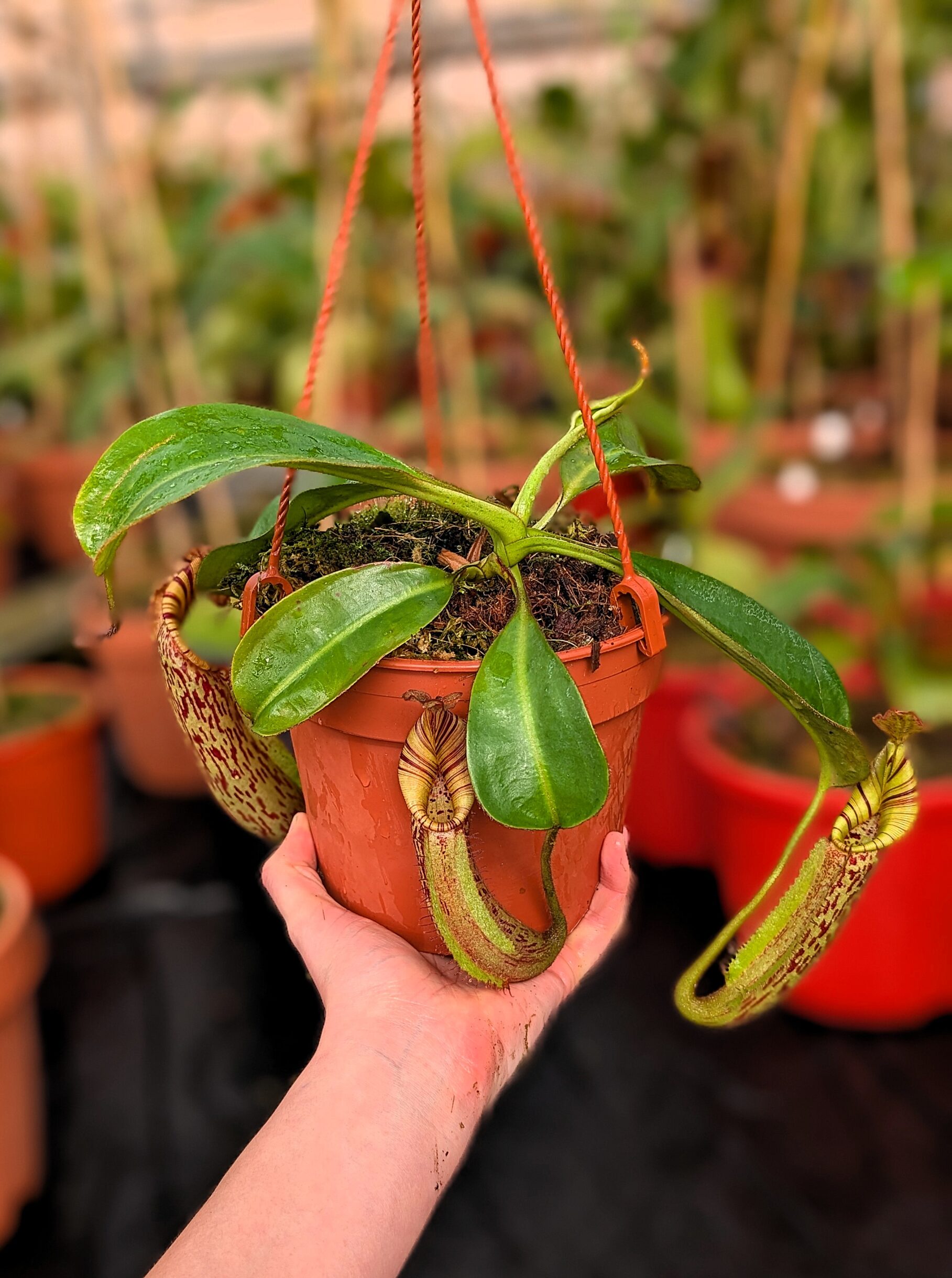 A distinctive Nepenthes hybrid combining bold structure and refined detail. Influences from N. boschiana and N. veitchii provide sturdy growth and well-formed pitchers, while N. mollis adds a softer, more elegant touch.