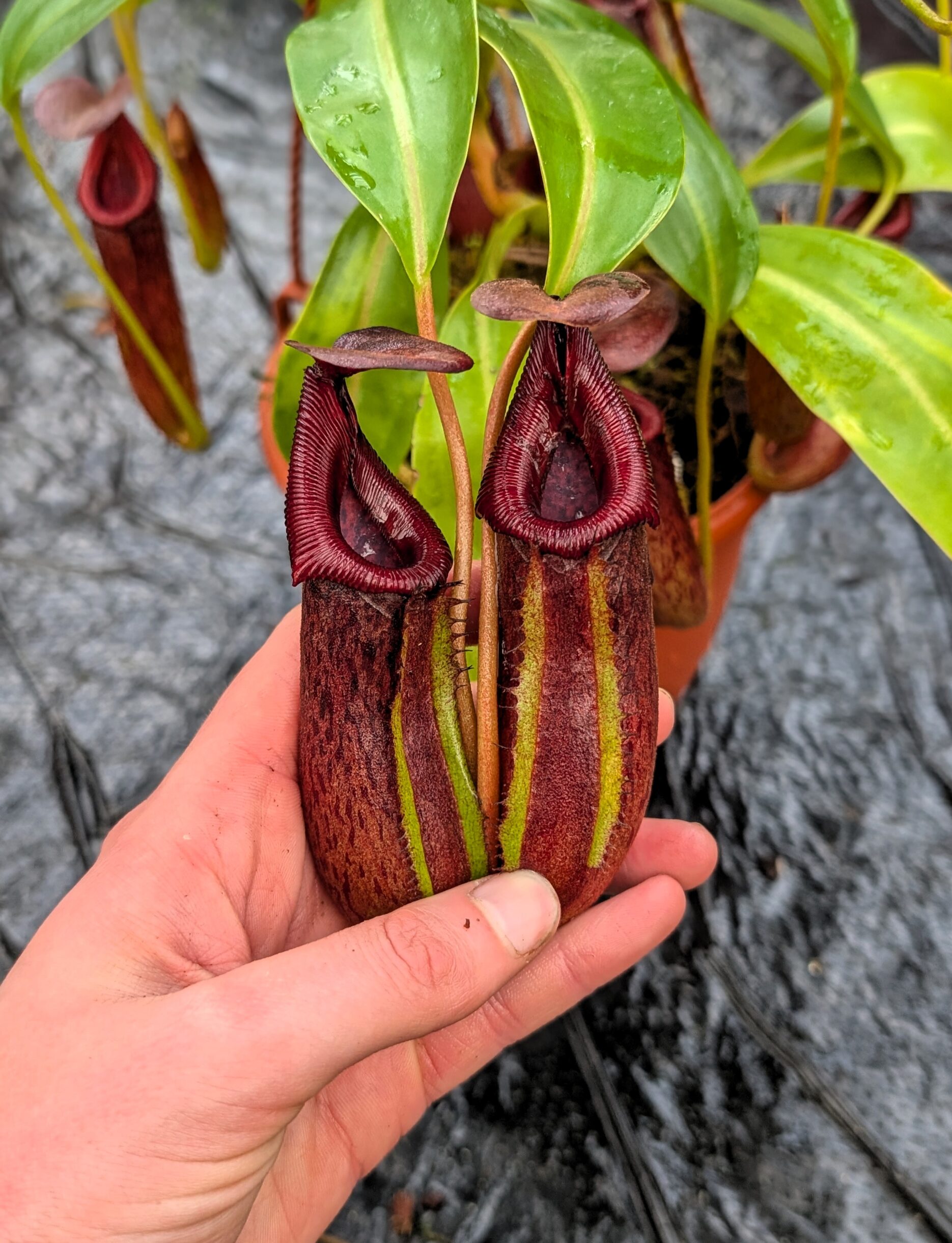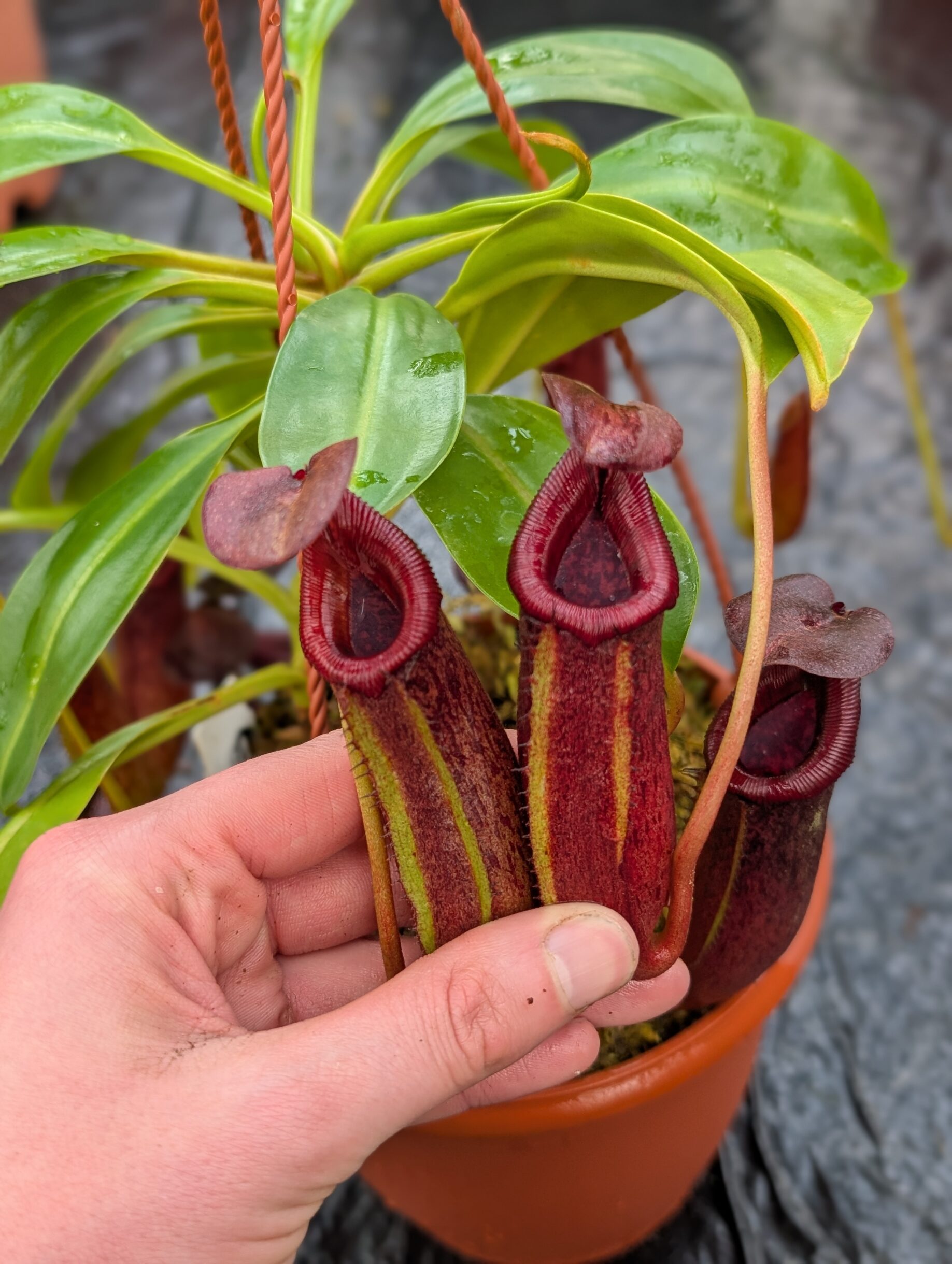 Reserve 1243: N. [(Rokko ‘Exotica’ x boschiana) x veitchii] x Sabre ‘Dark Cherry’ – 2025 - (27 cm) now for 30 minutes before anyone else does!