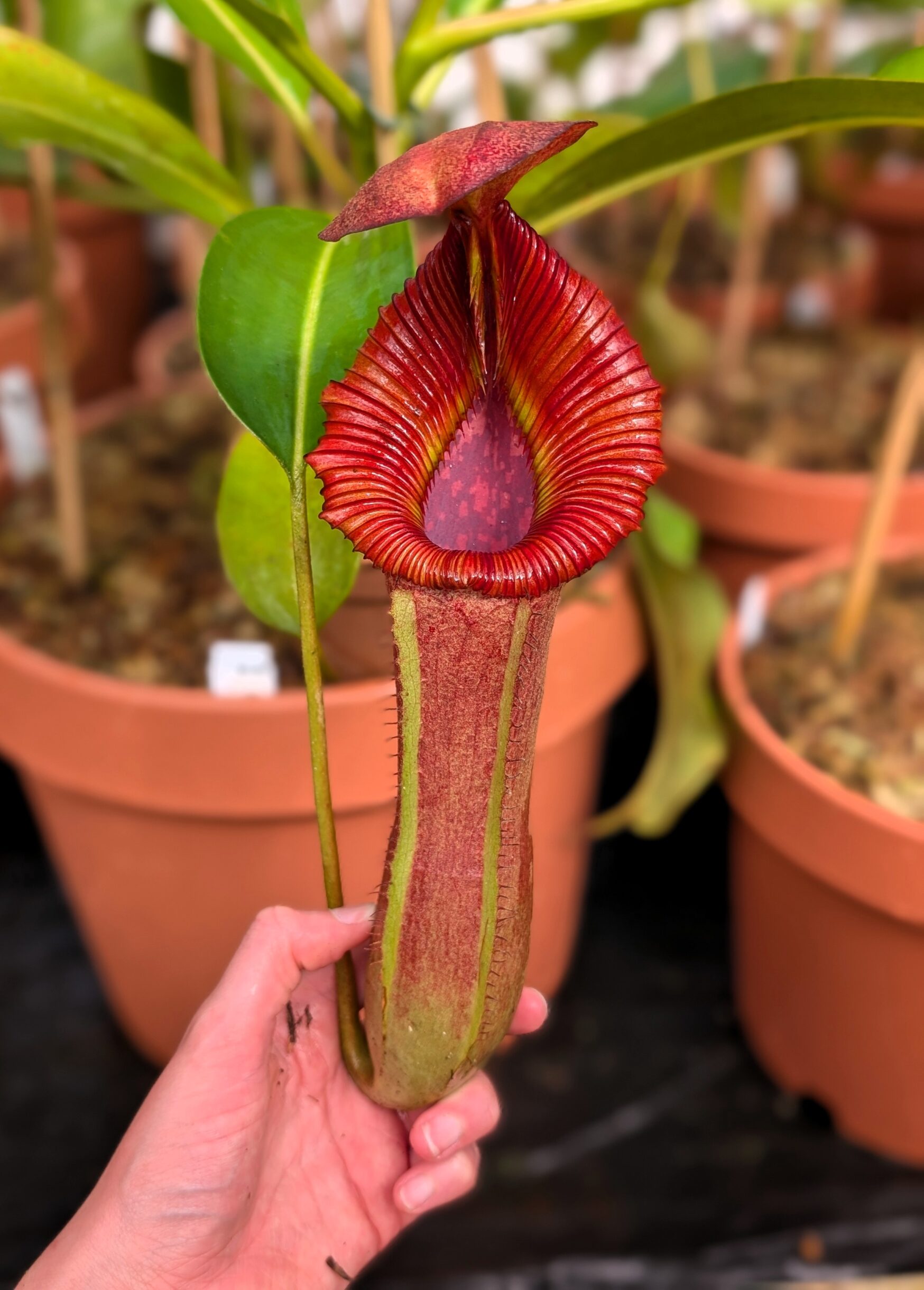 Two amazing parents that produced this hybrid from EP. They show beautiful striped and ribbed peristome and will grow out as giants with insane peristomes!
