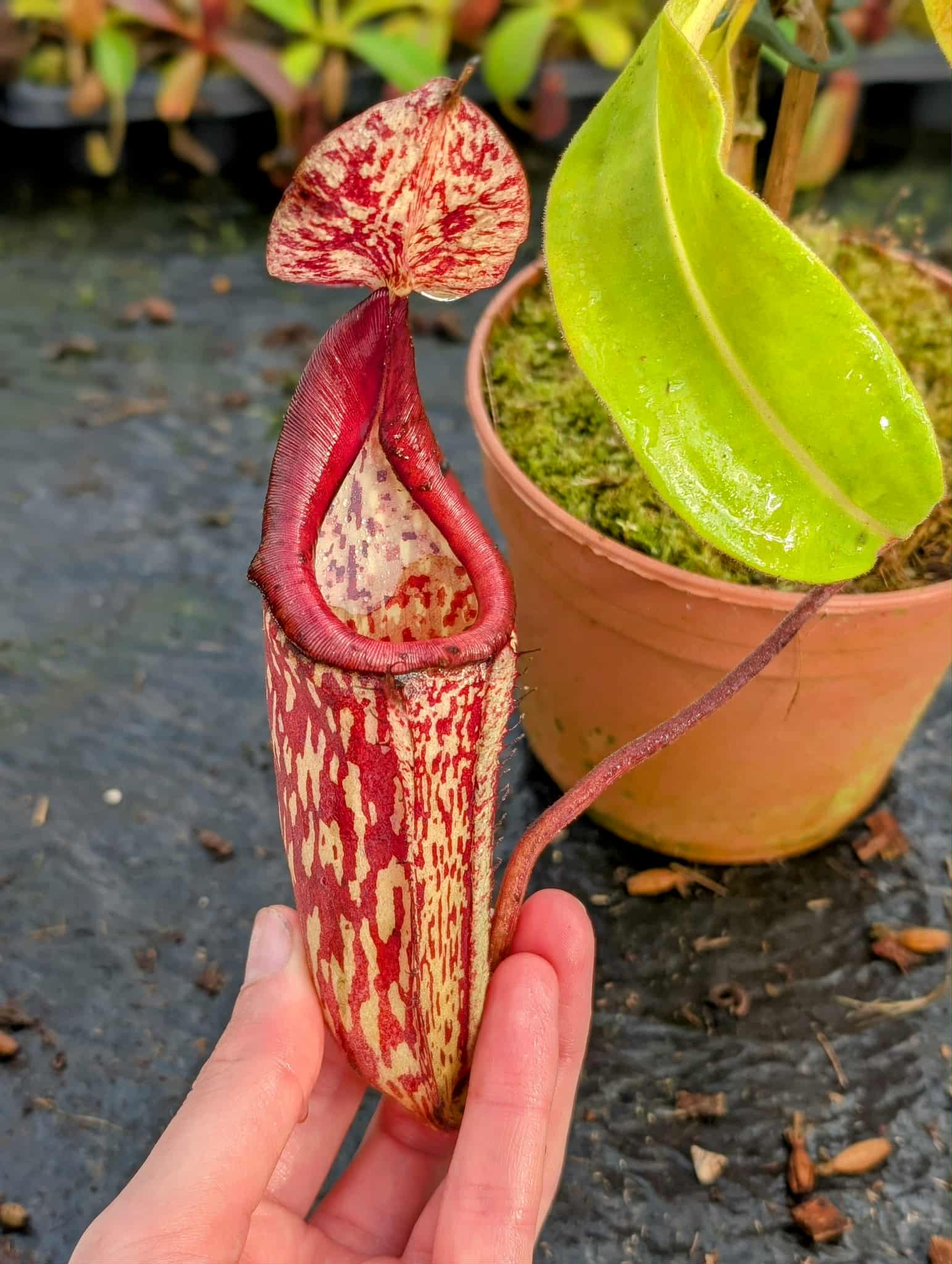 Rooted cutting from a beautiful seedgrown Nepenthes maxima from Sulawesi. Confirmed female.