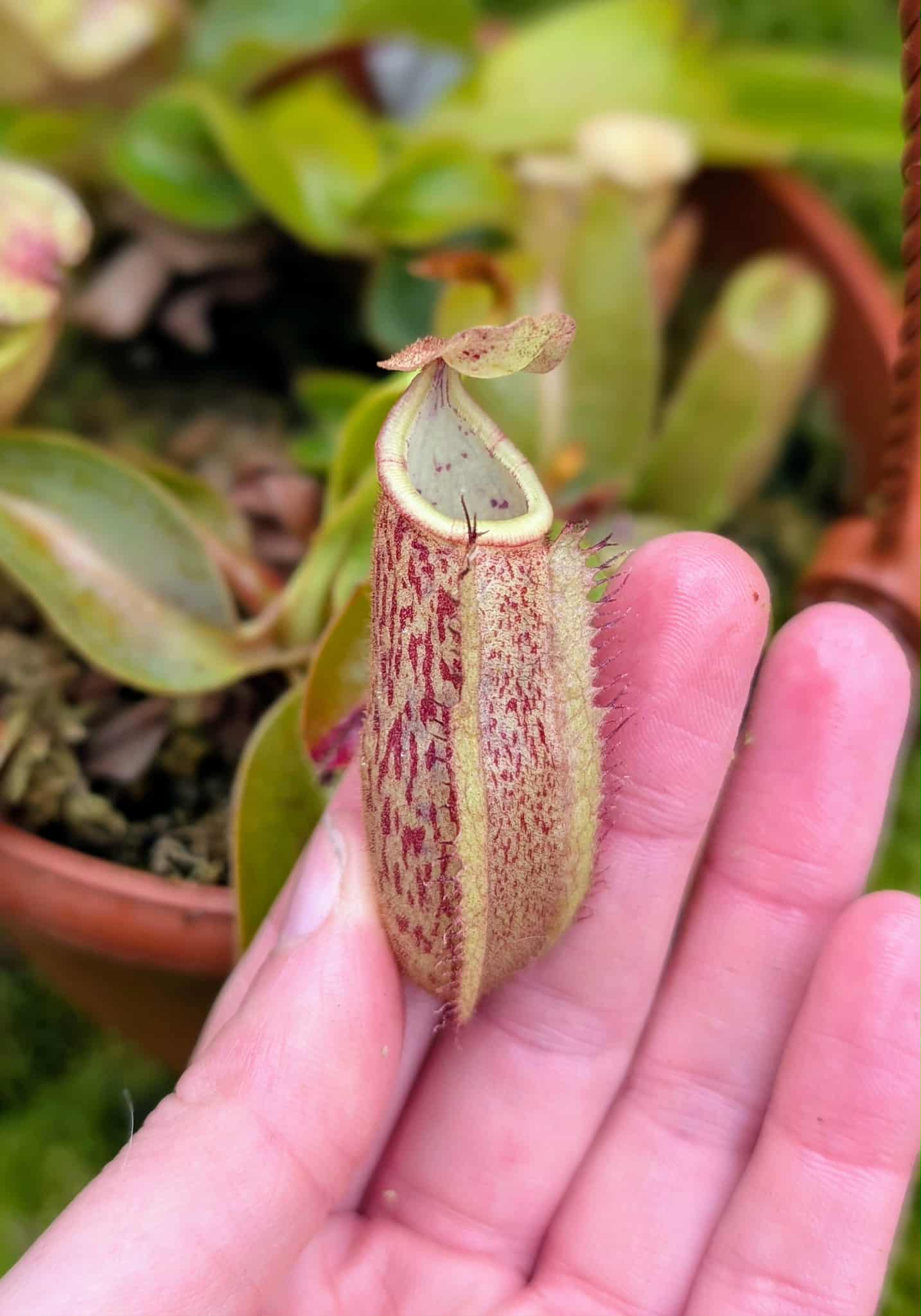 This seed-grown hybrid combines two well-known highland species: Nepenthes veitchii (male) and Nepenthes boschiana. Both parent species are highly regarded in cultivation, and this cross brings together their genetic strengths in one unique plant.