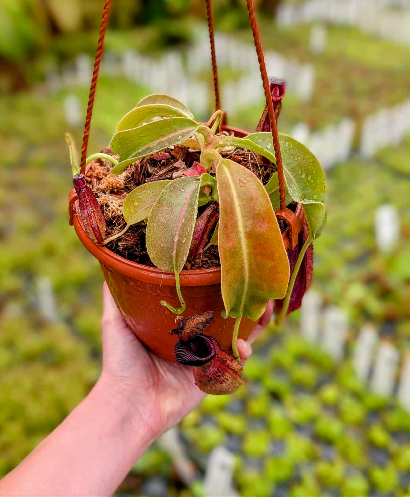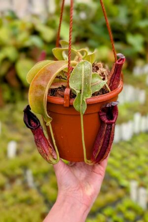 A highly complex and genetically rich Nepenthes hybrid, bringing together legendary species like lowii, veitchii, boschiana, maxima, fusca, spectabilis, and trusmadiensis.