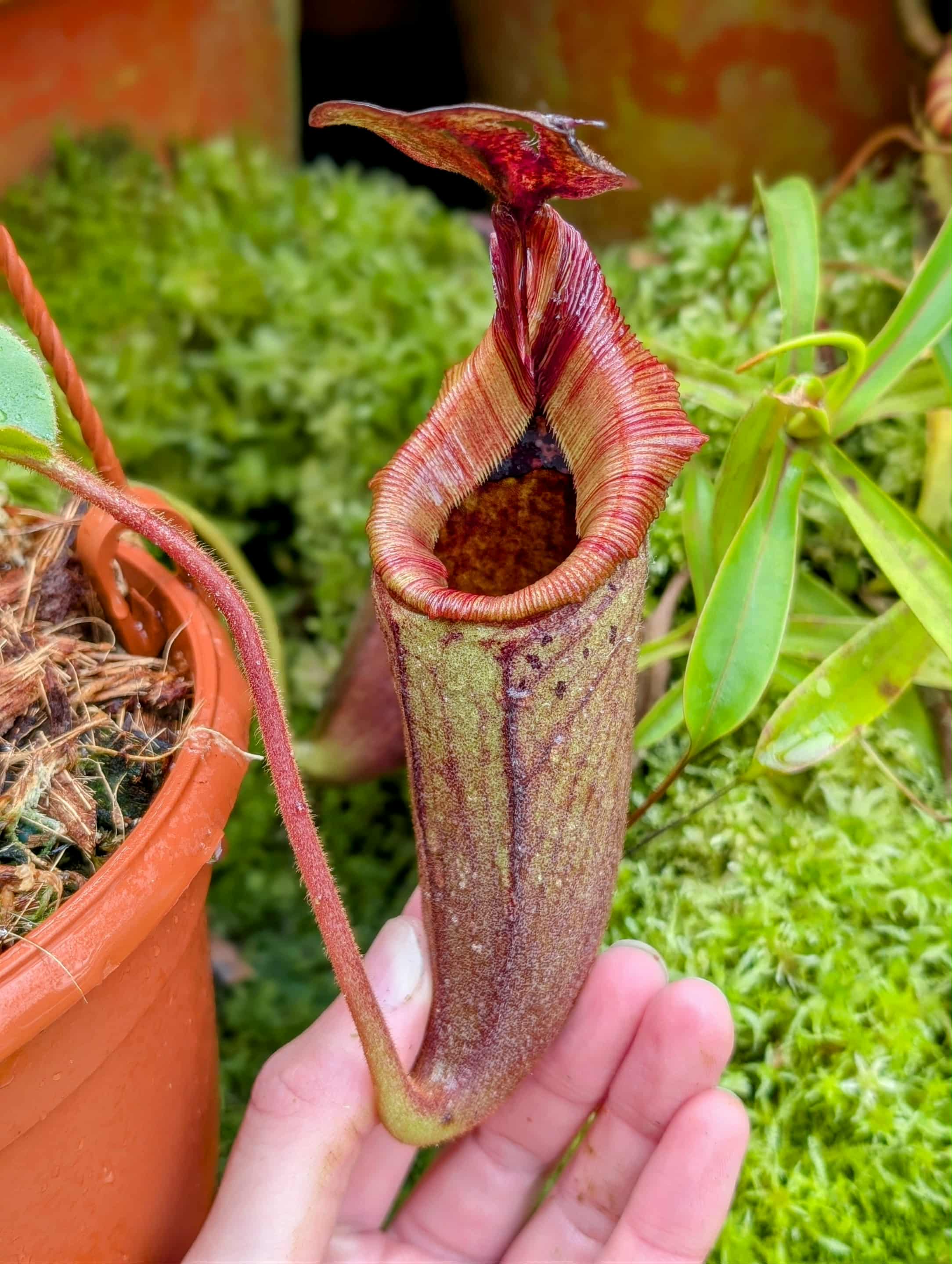 Reserve 729: N.[(lowii x veitchii) x boschiana] x [(veitchii x maxima x veitchii] x [spectabilis x (lowii x ventricosa)] - (19 cm) now for 30 minutes before anyone else does!
