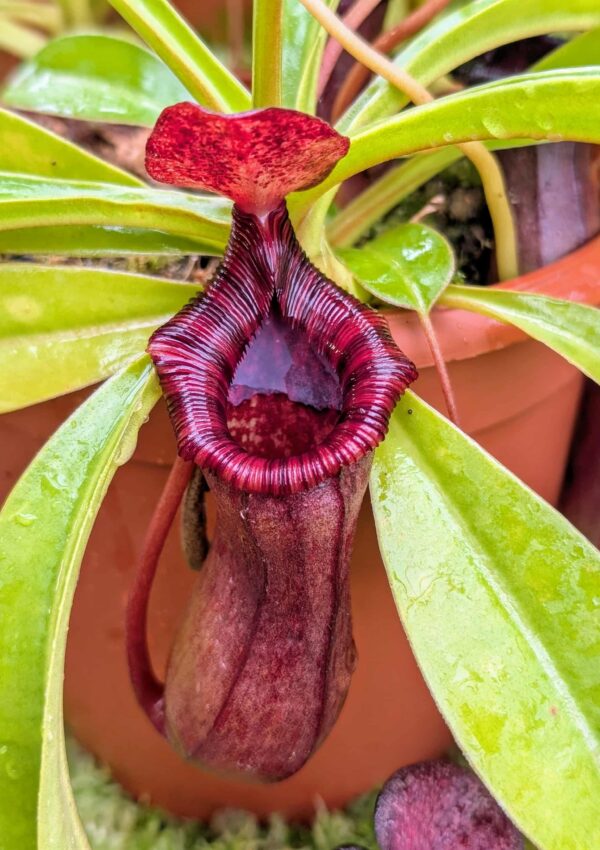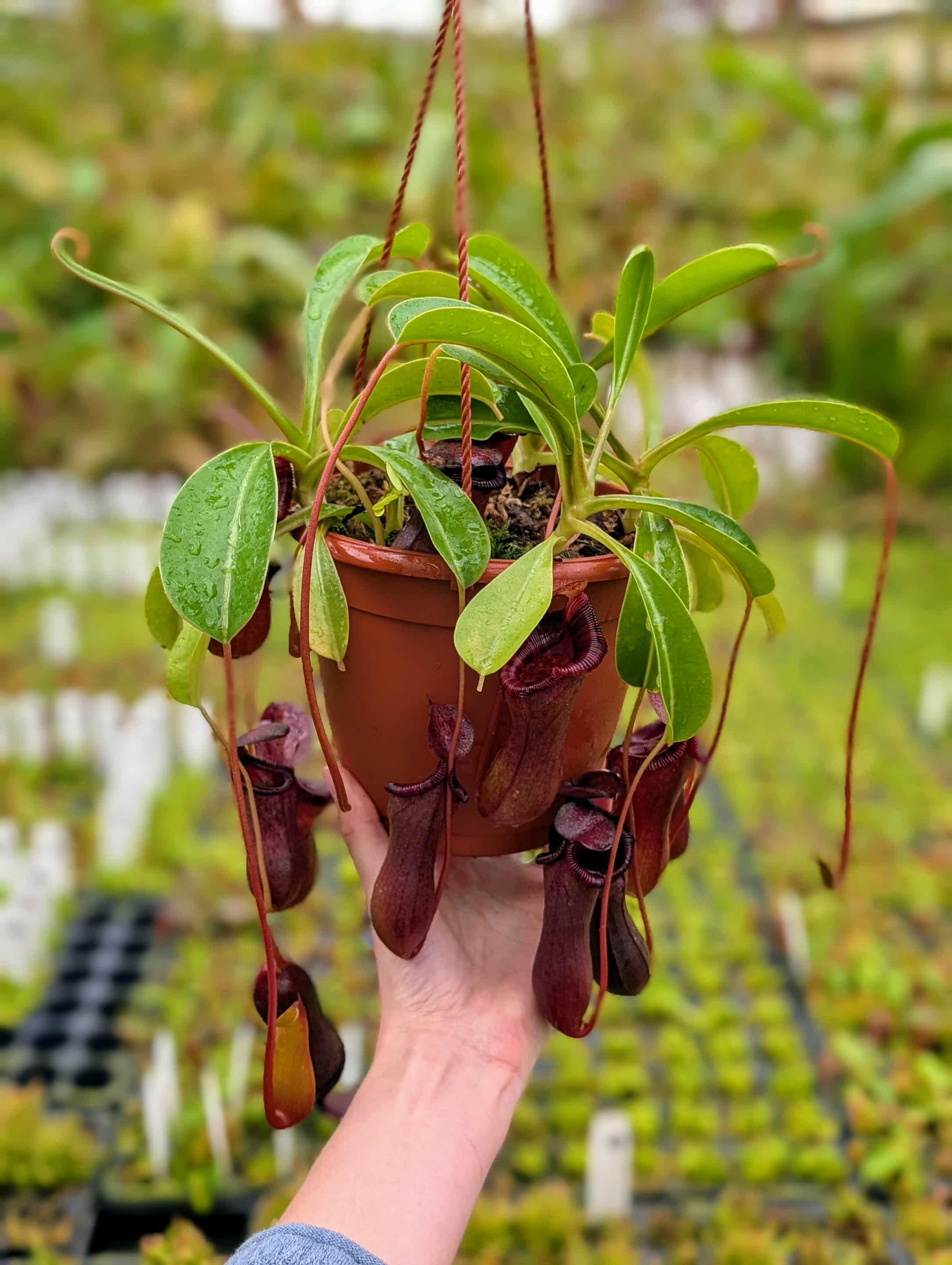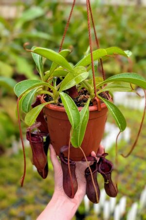 Striking red hybrid with the unique shape of lowii and the hardiness of ventricosa. Vigorous growers with great pitcher color and form. You’ll receive 4 plants.