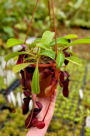 Striking red hybrid with the unique shape of lowii and the hardiness of ventricosa. Vigorous growers with great pitcher color and form. You’ll receive 4 plants.