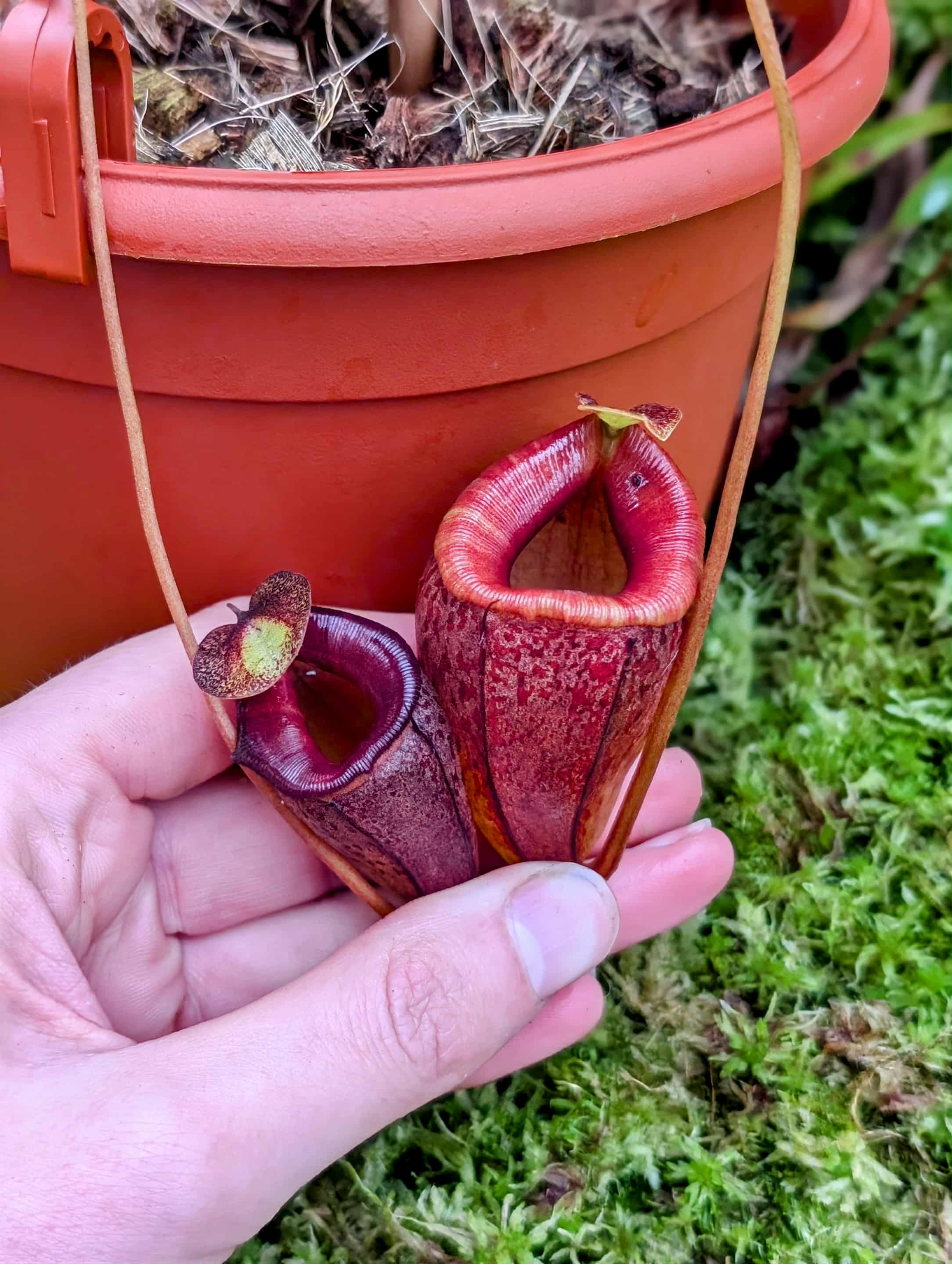 A delicate yet striking hybrid combining the slender elegance of N. tenuis with the vibrant colors and classic pitcher form of N. flava.