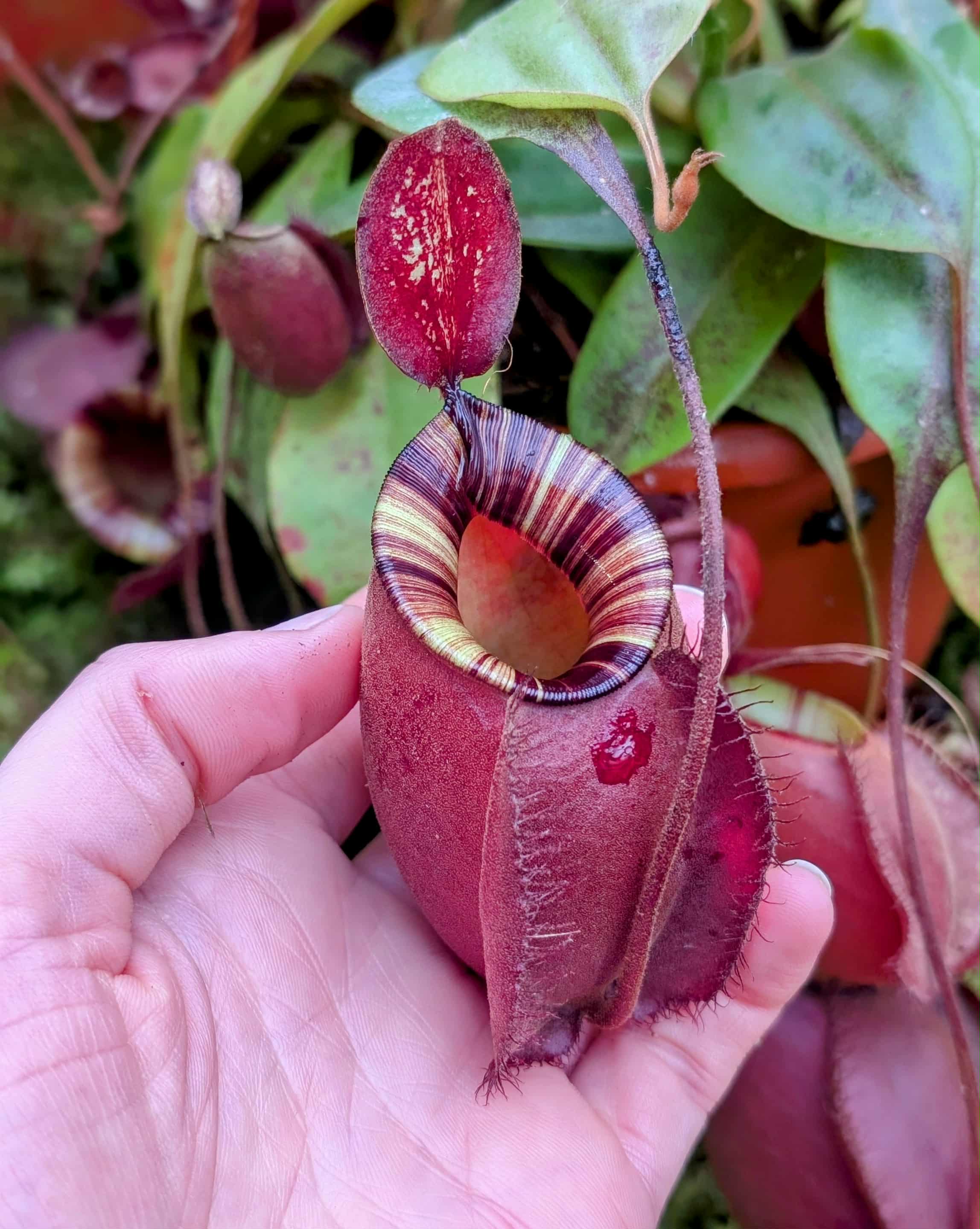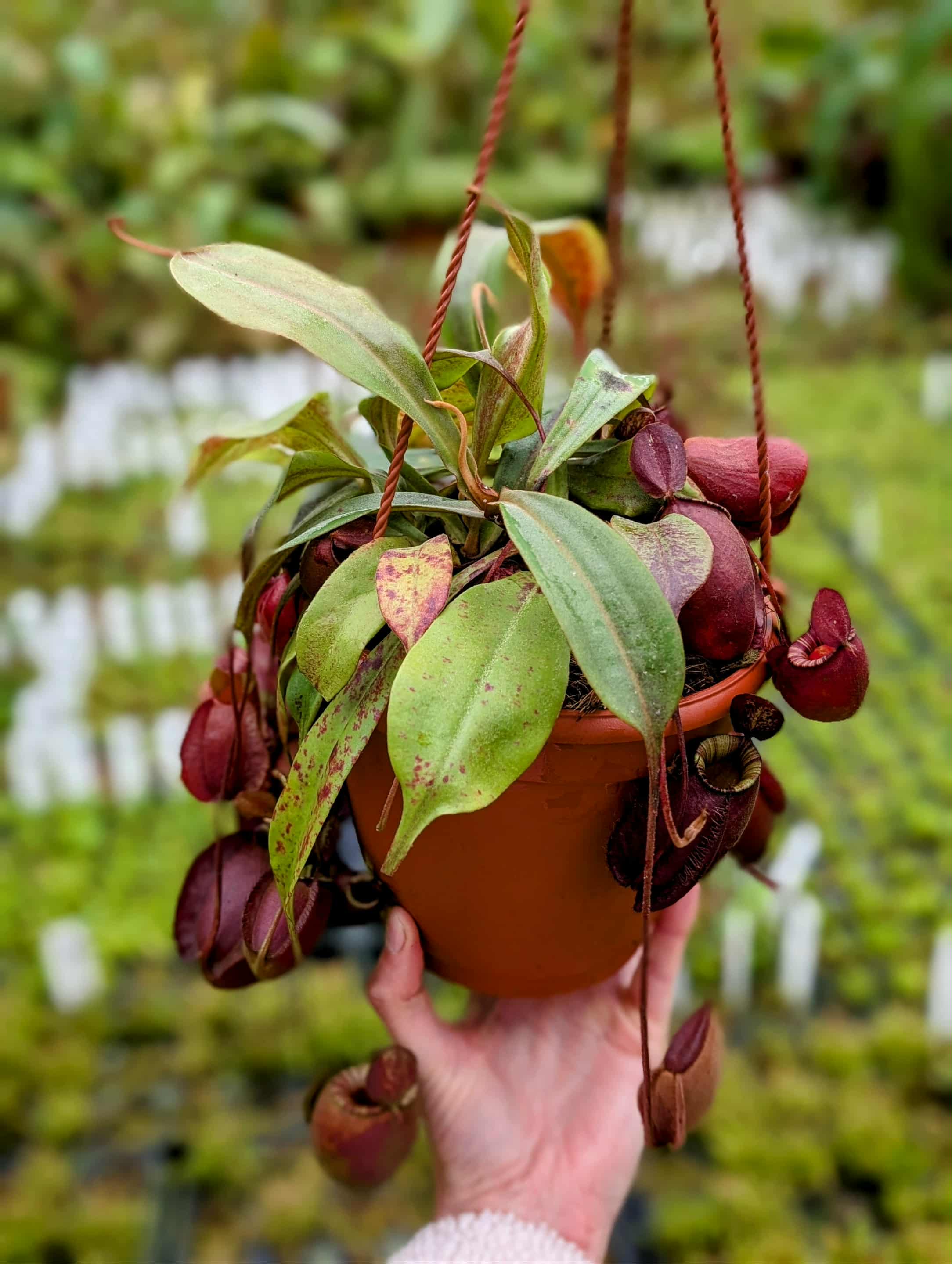A unique opportunity to own a hybrid of Nepenthes mirabilis var. globosa × ampullaria. This cross combines the striking features of both parent species: the compact, globular pitchers of N. globosa with the ground-hugging, tubby charm of N. ampullaria.