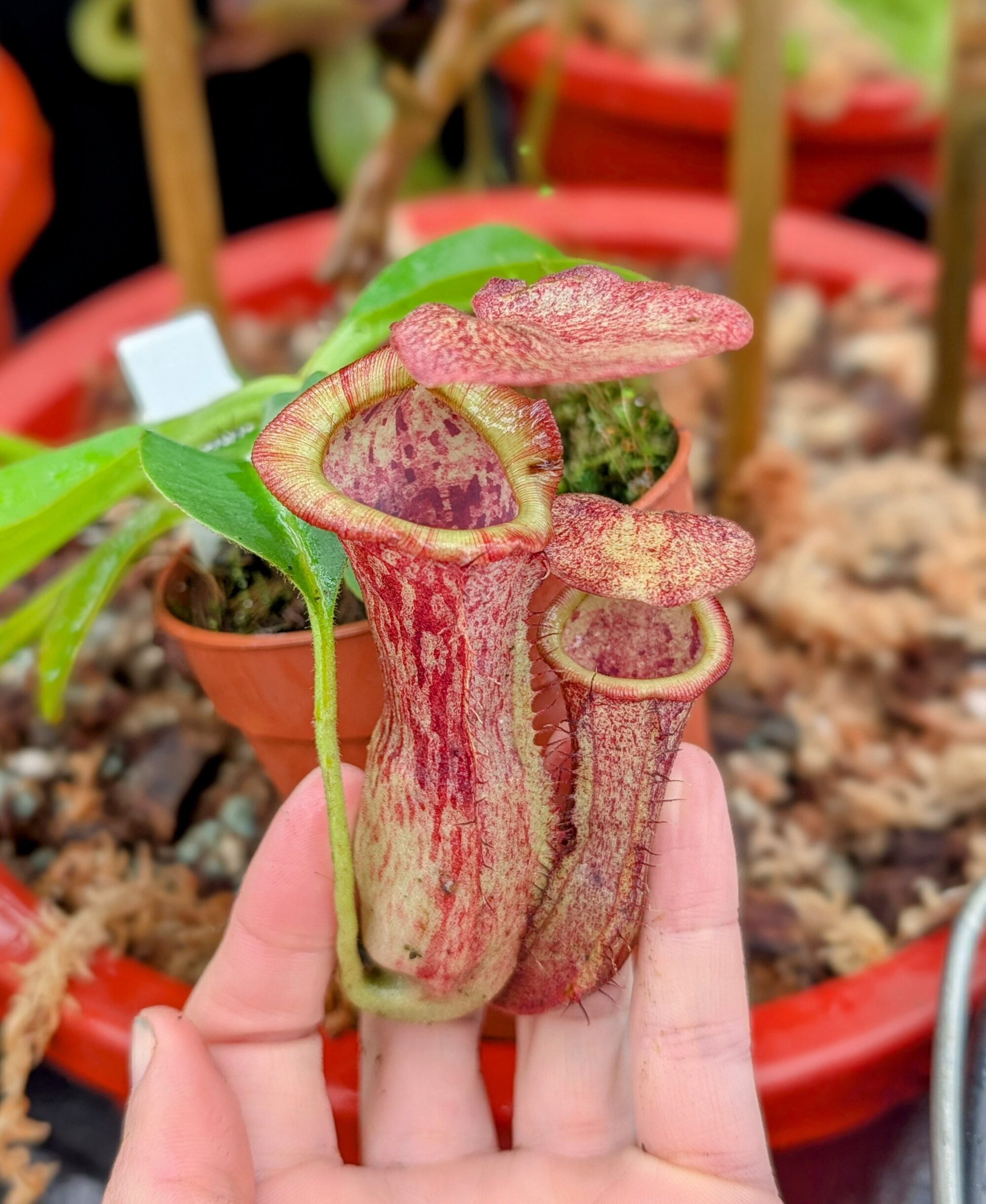 I expect some exceptionally squat pitchers with a striped peristome with a maroon colouration