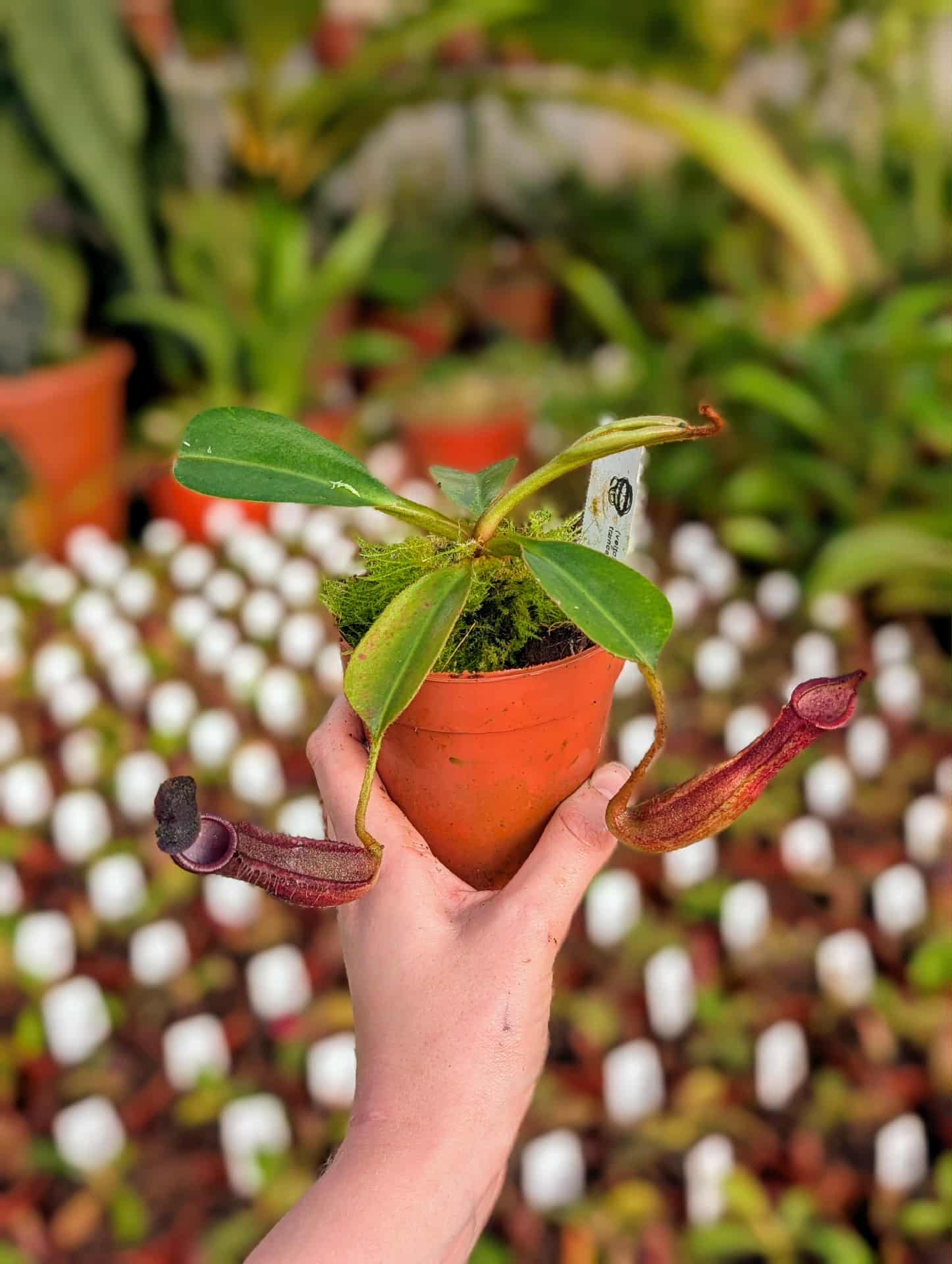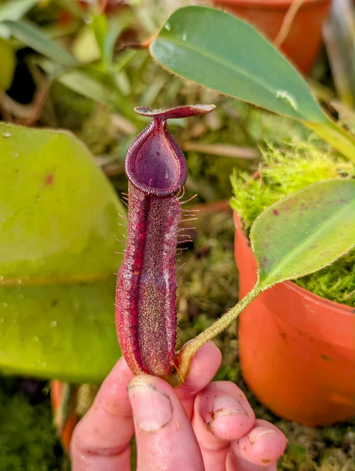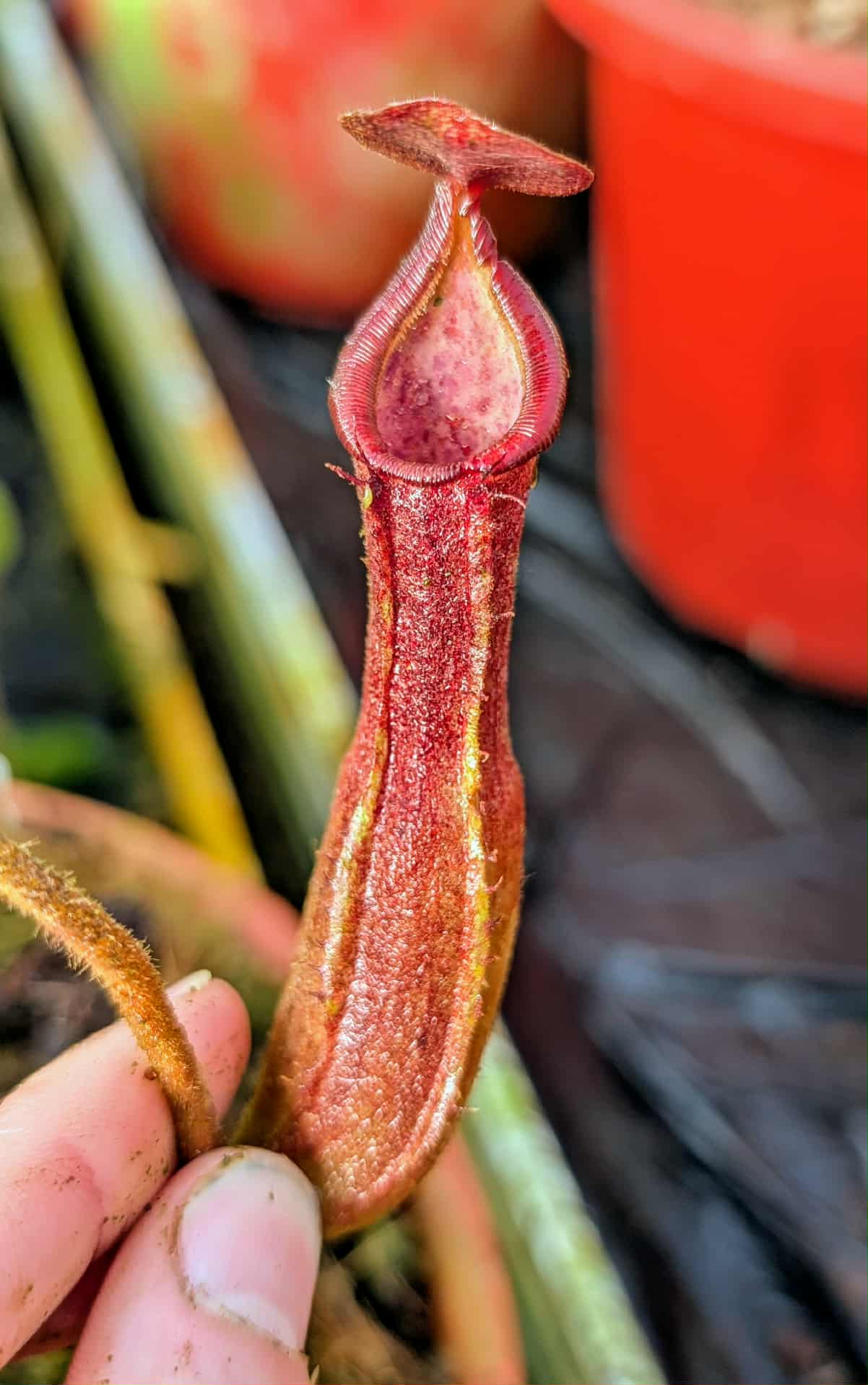 A new hybrid by Taerwe Tropicals. I expect some large, elongated pitchers with slightly ribbed peristomes